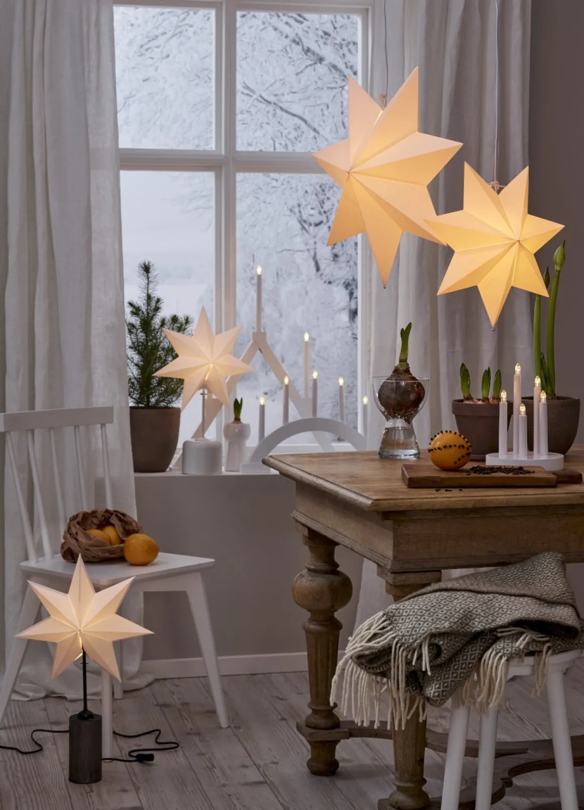 Lös Vit Pappstjärna Polar 40 cm med metallhållare för montering på fot eller som hängande. För inomhusbruk.
