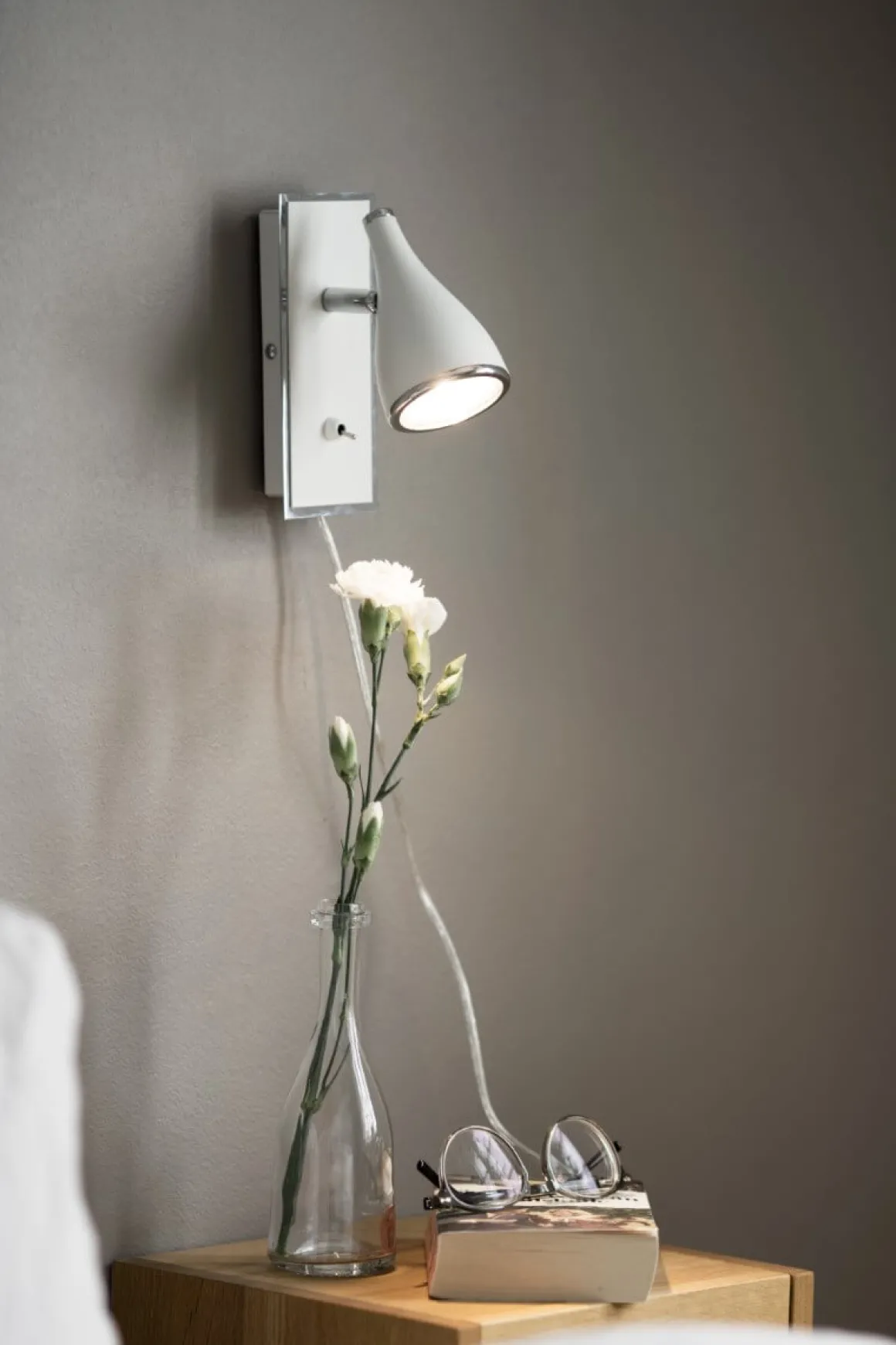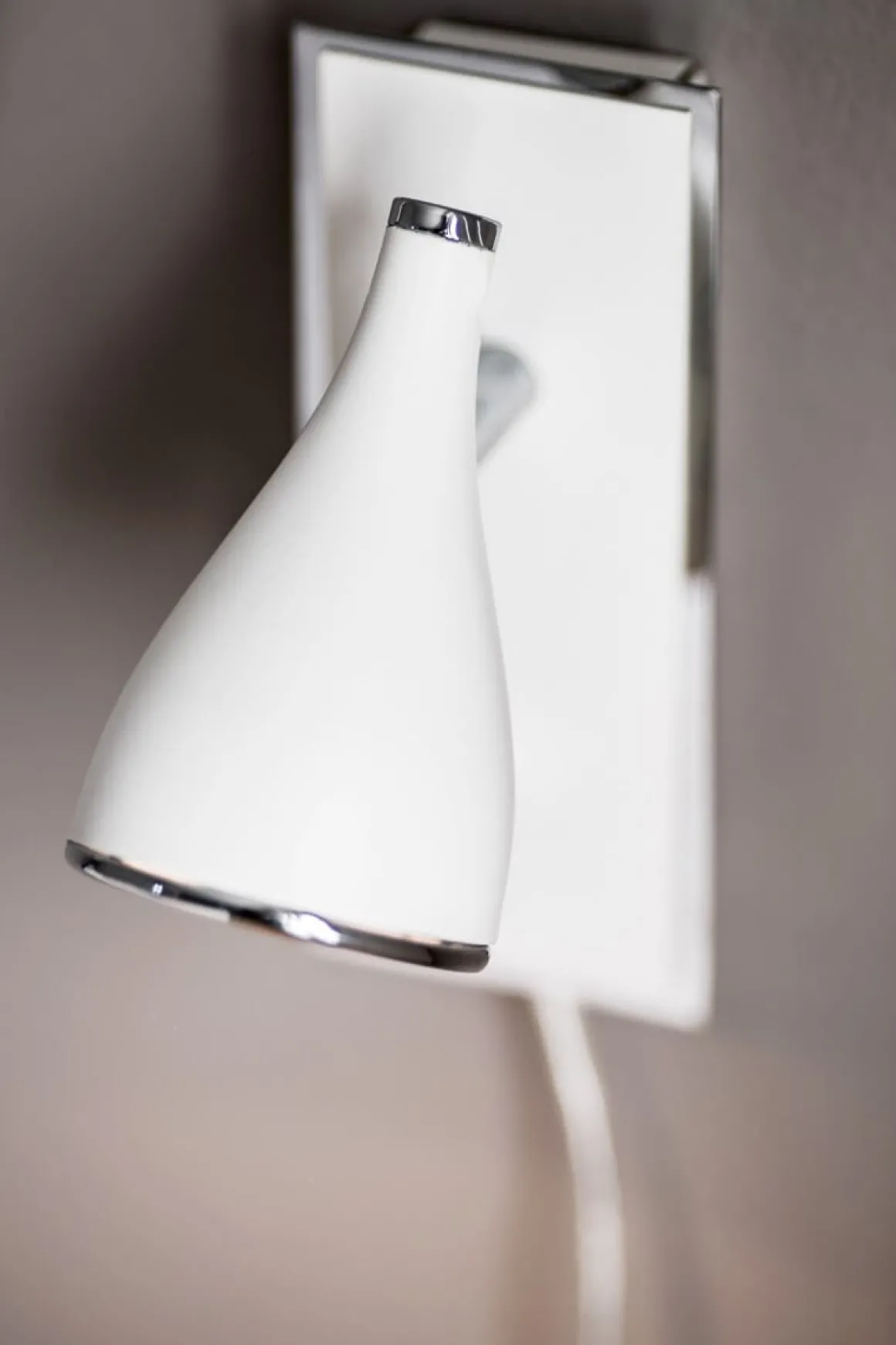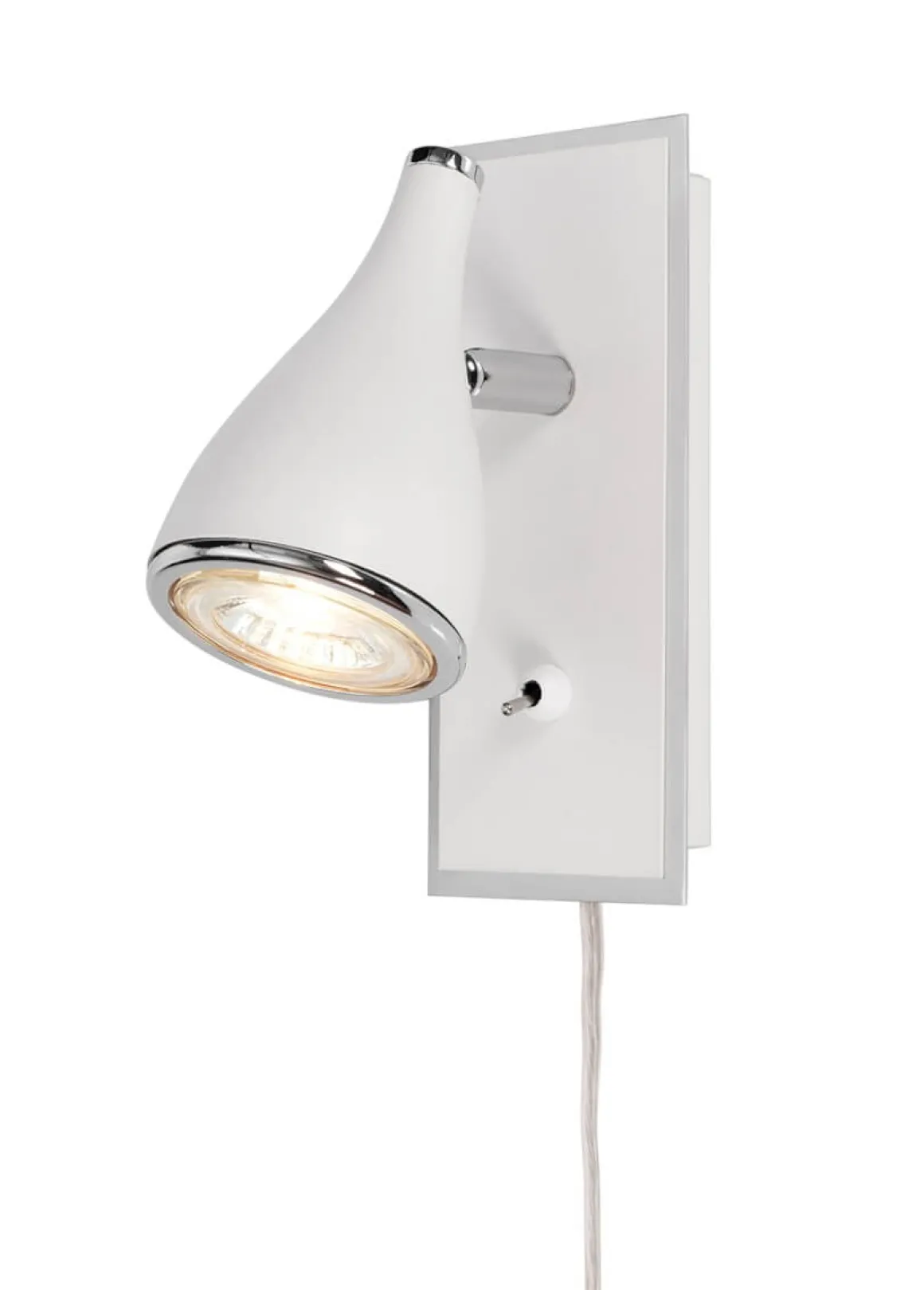 Pollux vit vägglampa med detaljer i krom från Cottex är med sin stilfulla design och tidlösa look ett lysande inslag i ditt hem.