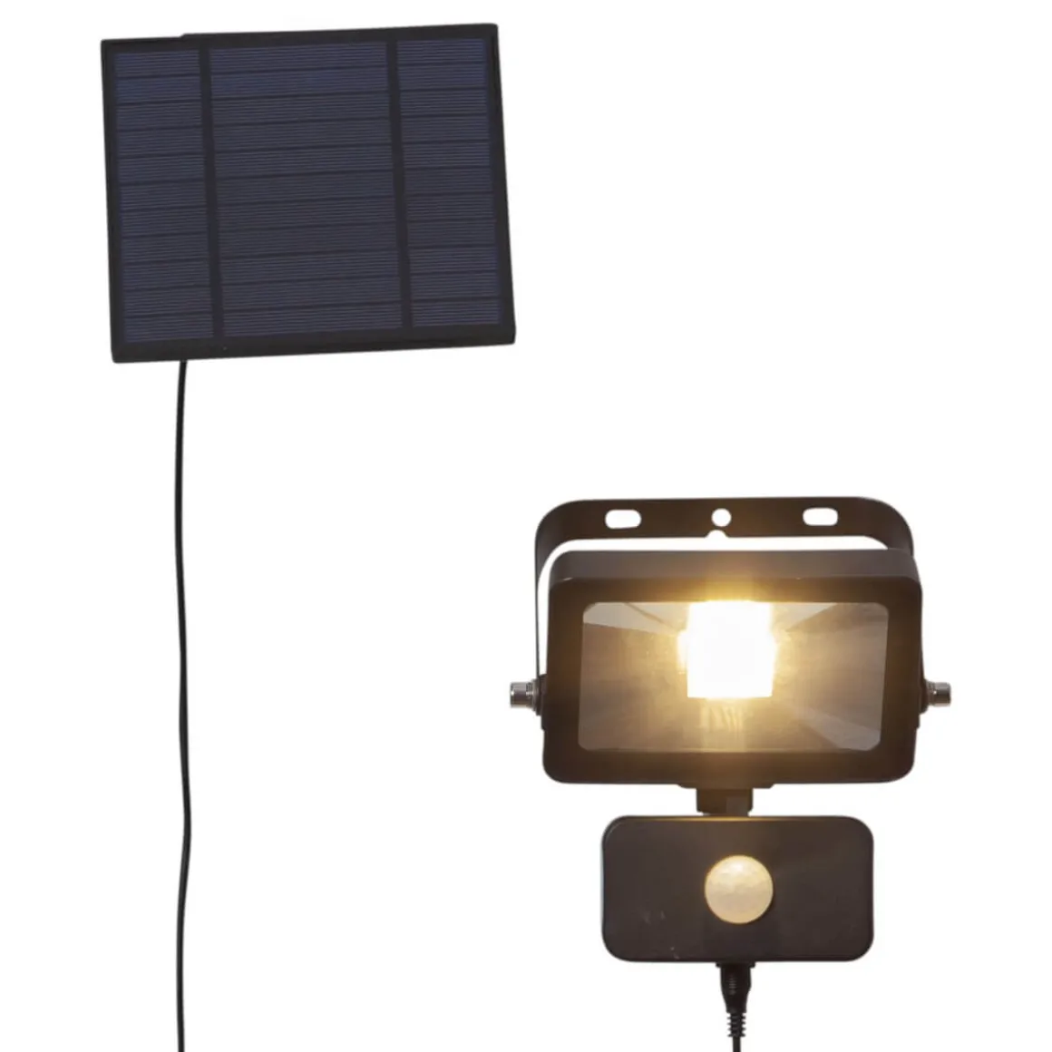 Solcells väggspotlight med PIR och skymningssensor från Star Trading. När sensorn aktiveras lyser den med hela 800 lumen under 60 sekunder för att sedan gå ner till 40 lumen. Sensoravstånd från 5 till max 8m med 120 graders vinkel.