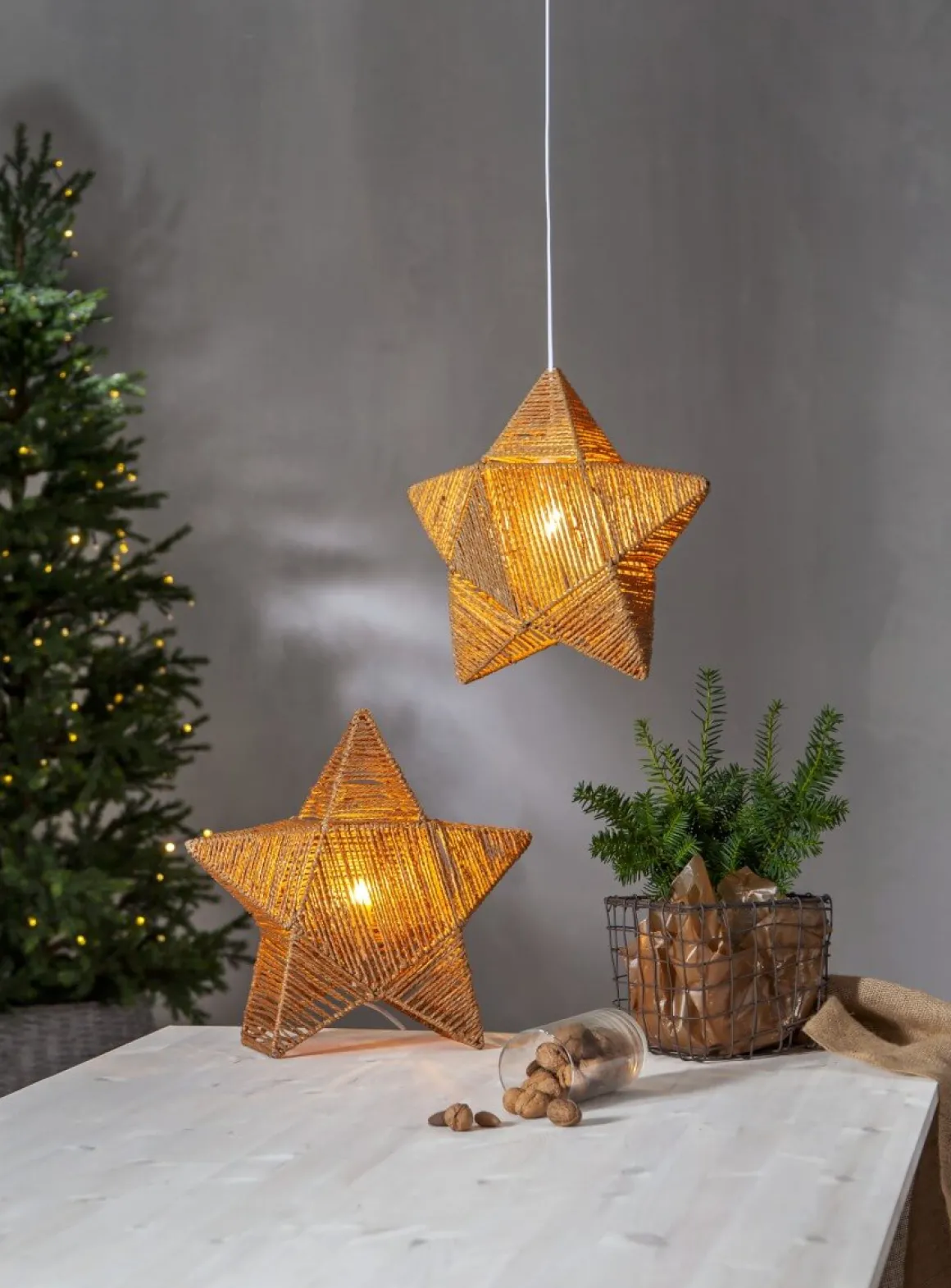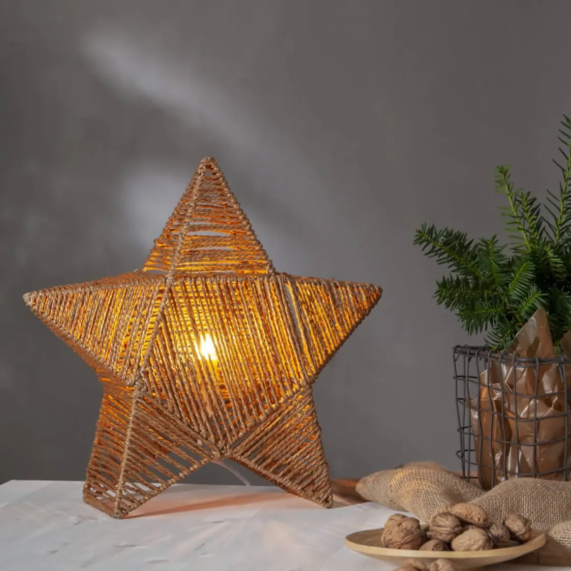 Fantastisk, stämningsfull julstjärna att placera på ett bord eller i en hylla. Rappe är tillverkad av brunt papperssnöre som har lindats runt en stjärna i metall. Dekorera till advent och jul eller varför inte redan när höstmörkret kryper sig på.