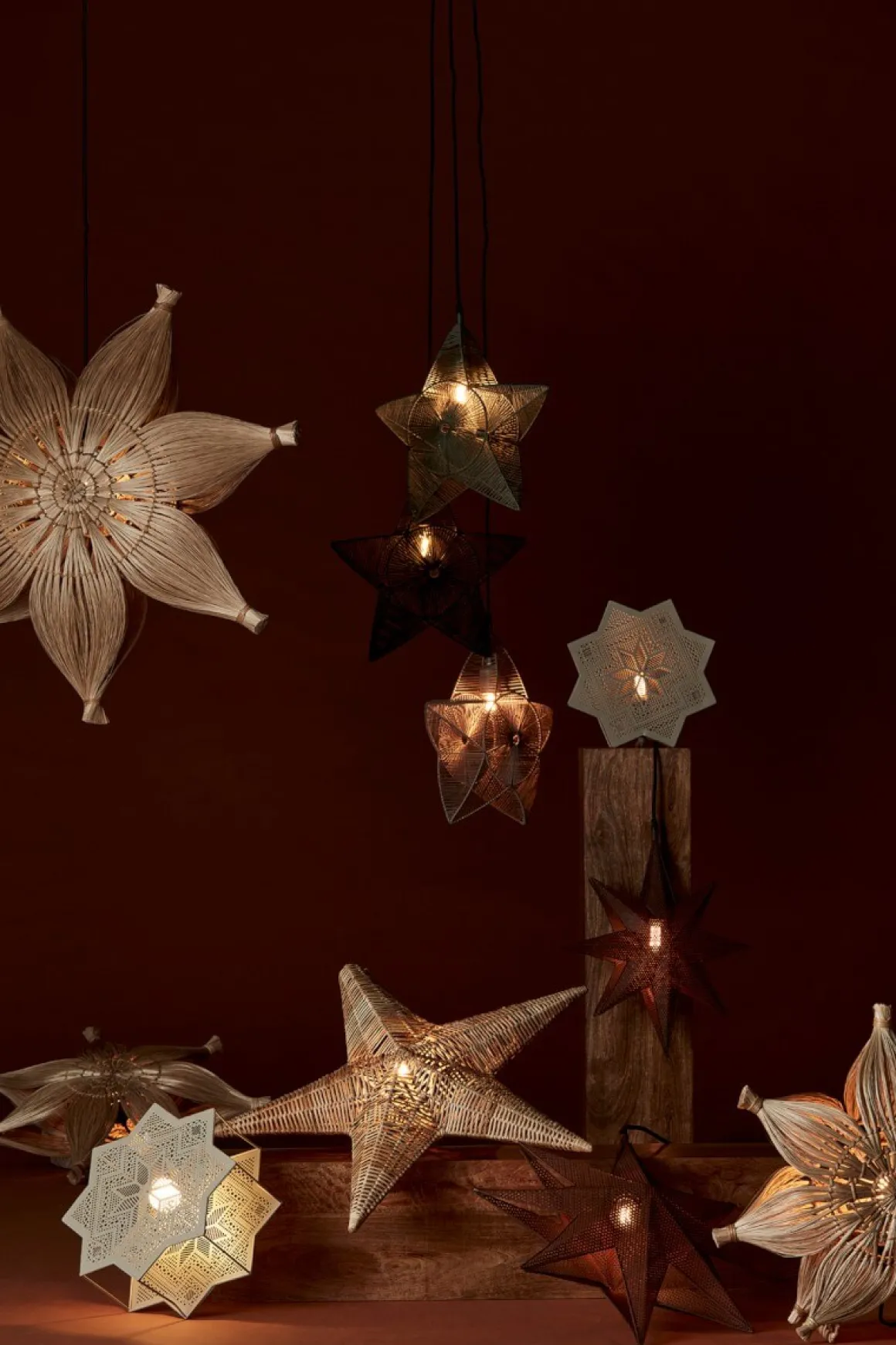 Otroligt läckra hängande adventsstjärnan Regina från PR-Home med en ram av metall som virats in i grönt garn för hand. En modern geometrisk form som passar den skandinaviska stilen som handen i handsken. Sprider ett fint ljus och skapar en härlig julstämning i ditt hem. 3,5 meter lång svart textilsladd med krok och väggkontakt ingår.