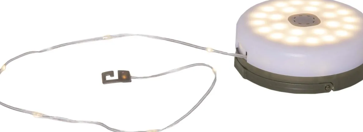 Praktisk uppladdningsbar slinga på rulle, perfekt för camping och utflykt. 10 meter lång med 100 varmvita LED-lampor som ger fast eller pulserande ljus. Fästs enkelt med magneter och krok. 24 varmvita LED med dimfunktion, 8 röda LED för SOS-blinkning och en ficklampa. Timer med 4, 6 eller 8 timmar. Laddas på 6 timmar, lyser i upp till 12 timmar. Fungerar även som powerbank med USB A och C-uttag.