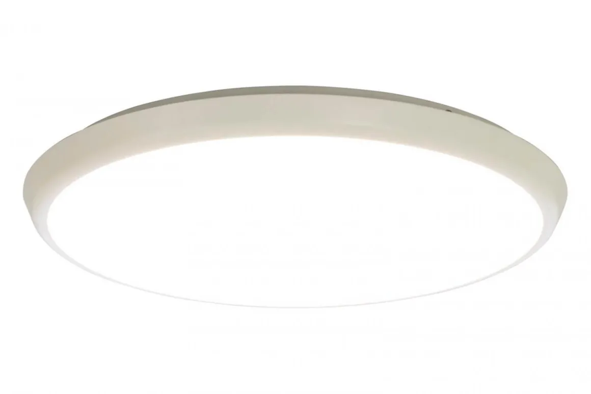Tunn Led plafond godkänd för badrum. Vit ram med vit kupa. Enkelhet när den är som bäst. Ronja har integrerad Led på 18 W med ett ljusflöde på 1710 Lumen. Här ser du stora Ronja med en diameter på 35cm.
