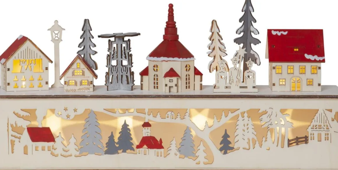 Rosenheim från star trading är en detaljrik ljusstake av laserskuret trä. Här finner du ett vackert landskap med hus och granar och 10 stycken varmt lysande ljuspunkter. Rosenheim finner lätt sin plats i ditt hem då den drivs med batterier.