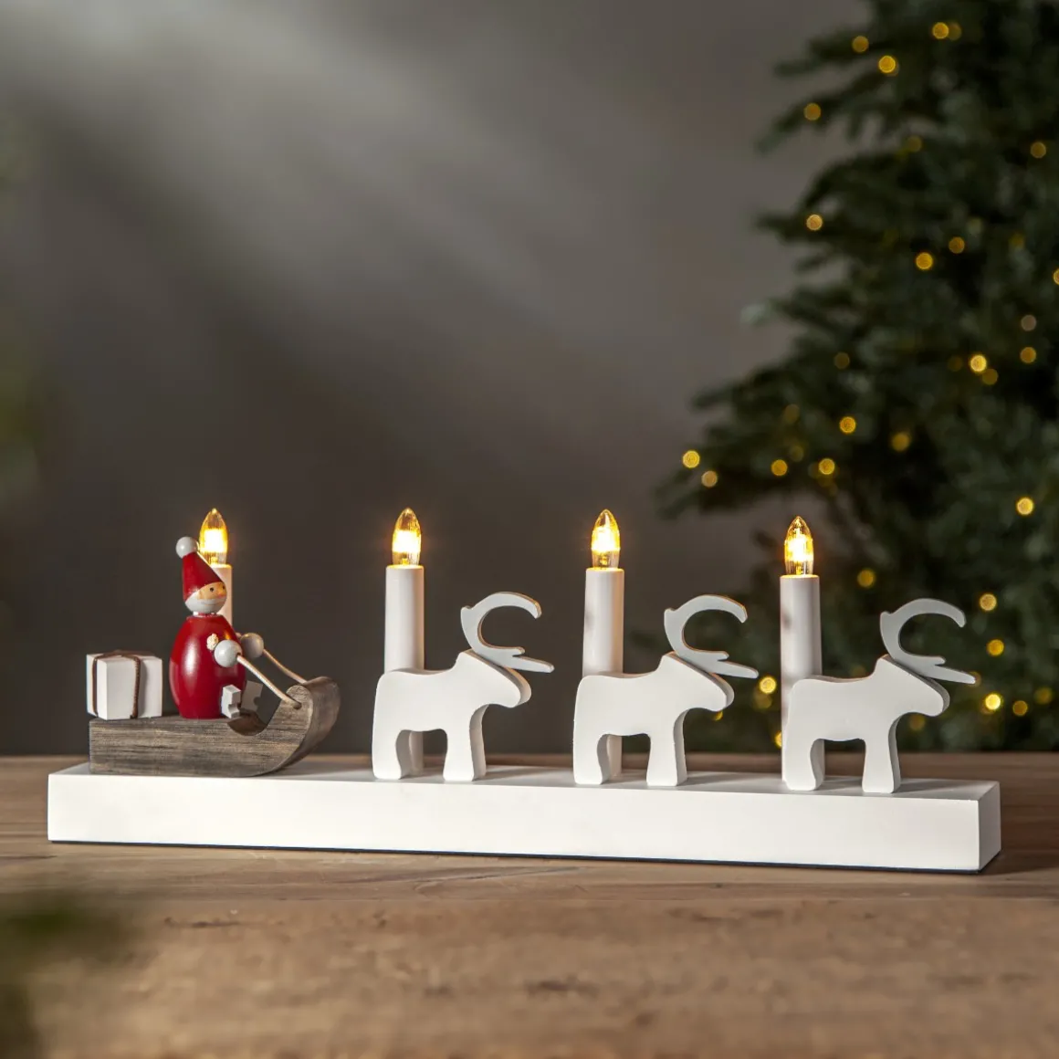 Det är något speciellt med dem ljusstakarna som inte bara är en ljusstake som Rudolf här. En vacker ljusstake tillverkad i trä med tomten och hans renar. En klassiker att ta fram från år till år. Placera den fina ljusstaken i ett fönster eller på en skänk för att få en fin julkänsla hela julen.