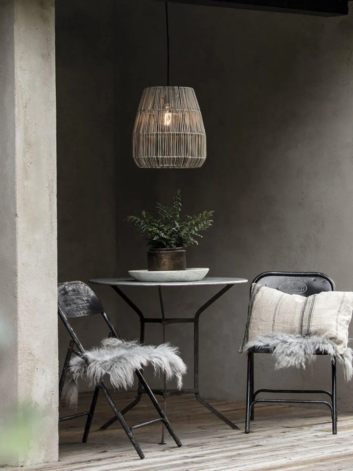 Saigon 18 cm, en grå vacker utomhusskärm i konstrotting från PR-Home. Konstrotting är ett tåligt material som klarar väder och vind. Den flätade strukturen skapar ett vackert ljusspel. Säljes komplettmed Flex Out svart takupphäng för utomhusbruk. Här ser du Saigon grå 18 cm.