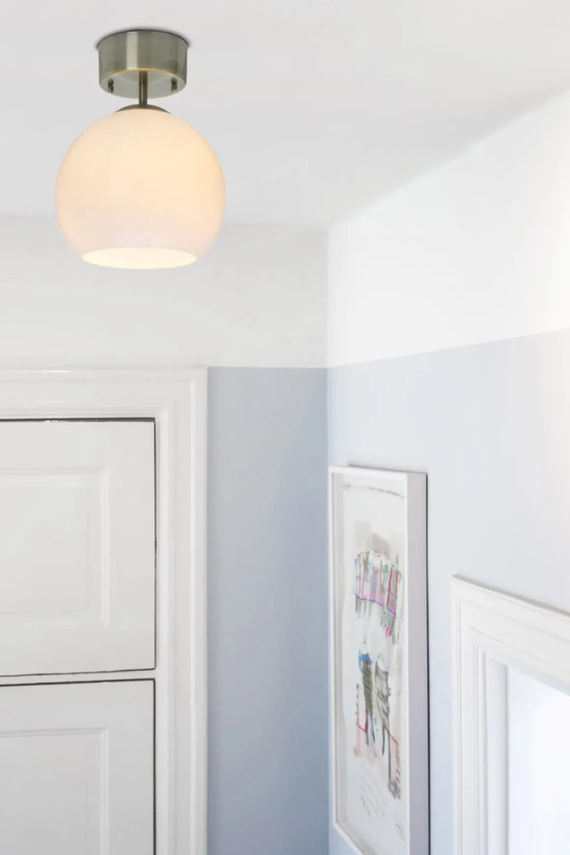 Stilrent – enkelt – Salle, behöver vi säga mer? Förmodligen inte, en klassiker i sin enkelhet här i antikfärgad stomme med opalvit kupa med hål i botten så du enkelt kan komma åt att byta ljuskälla. Krokupphäng? Absolut!