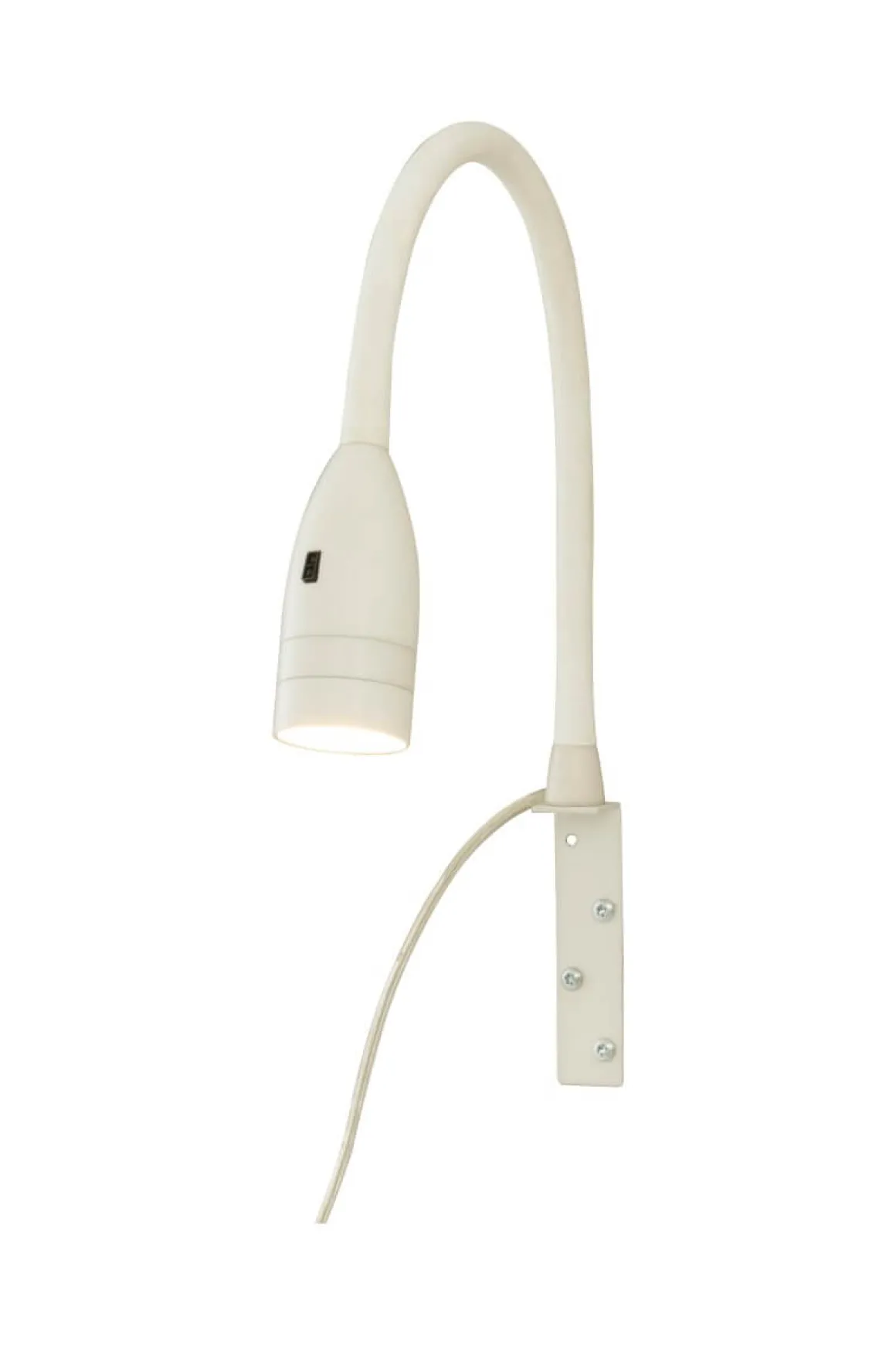 Smart liten vit läslampa från Aneta med tunt väggfäste som även går att skruva i en sänggavel. Lampan har en inbyggd touthdimmer placerad ute på lamphuvudet så du inte behöver ta dig in till väggen för att tända och släcka.