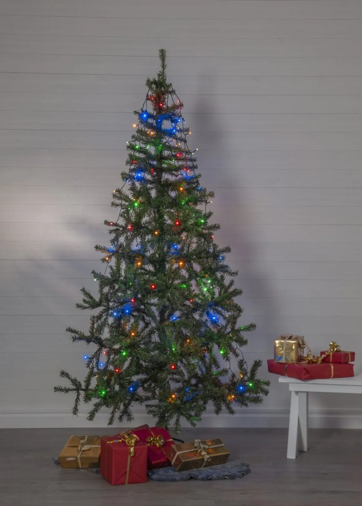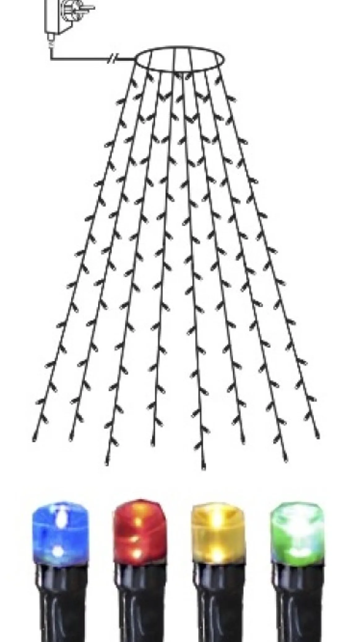 Julgransslinga i Serie LED från Star Trading. Slingan har 160 multifärgade ljuskällor fördelade på 8 strängar för enkel installation i din gran, med en anslutningskabel på 5 meter passar denna i de flesta trädgårdar