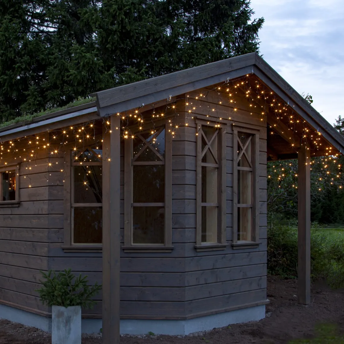 Istappsslinga med 960 LED lampor från Star Trading med vackert varmvitt ljussken på 2700K. Slingan är ca 24 meter lång. Perfekt för dekoration i din trädgård eller på huset när du behöver en längre slinga med många ljuspunkter.