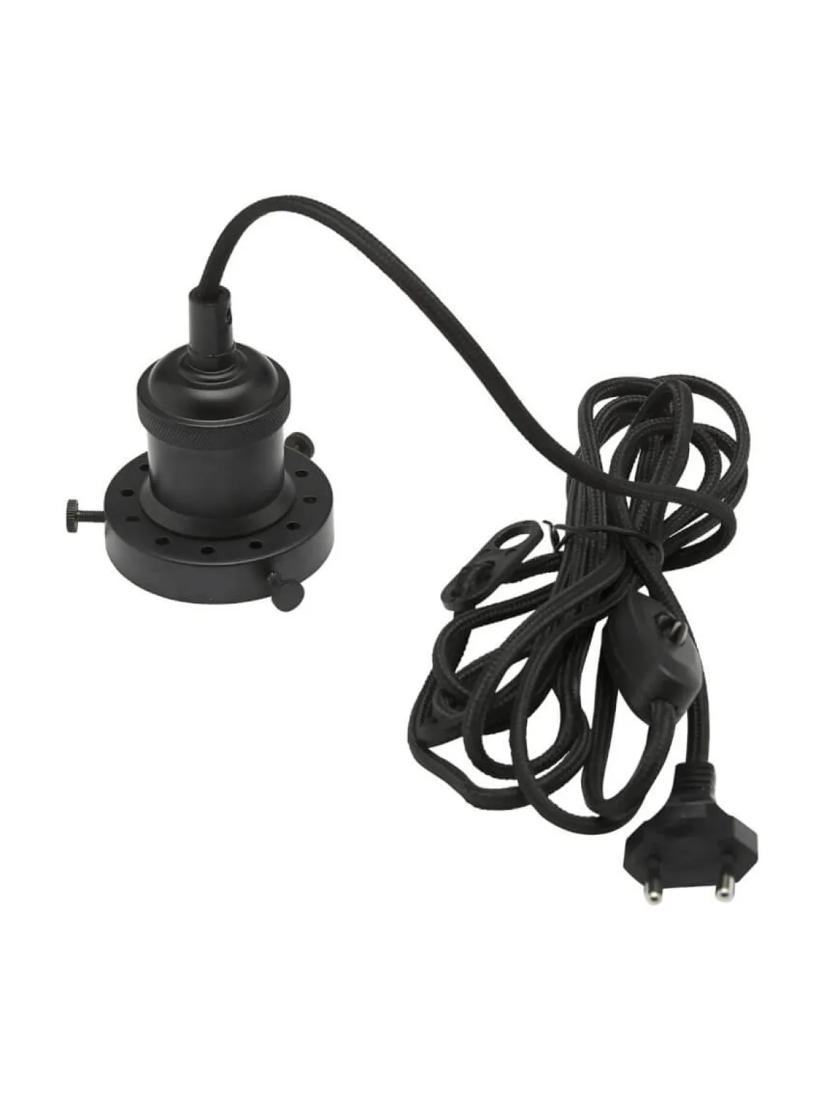 Siri takupphäng i svart från PR-Home. 3 meter svart textilkabel med strömbrytare och väggkontakt. Upphänget passar skärmar av typen skomakare, August och Elly.