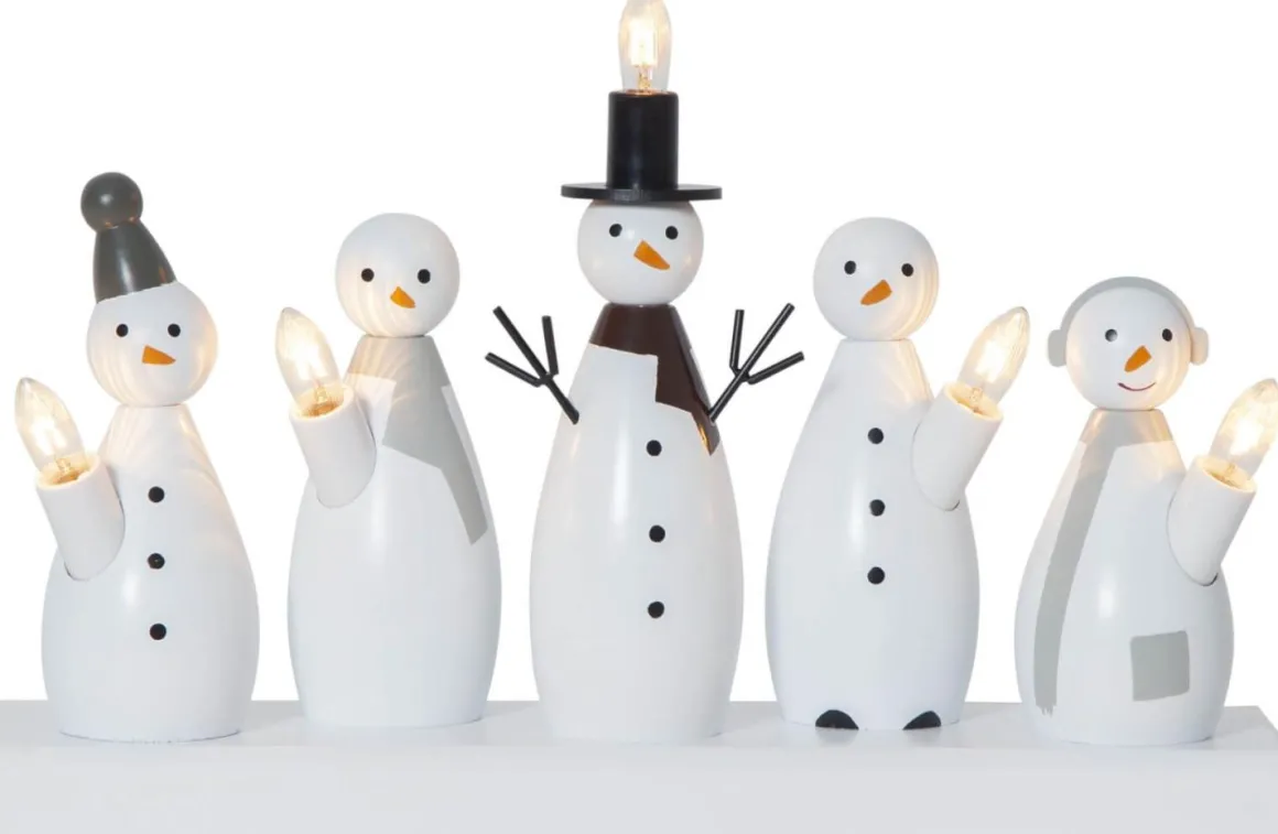 Så söt liten juldekoration med 5 små snögubbar i rad, den lilla ljusstaken ger ett härligt glatt intryck och passar såväl i fönstret som på en liten skänk eller varför inte på diskbänken?