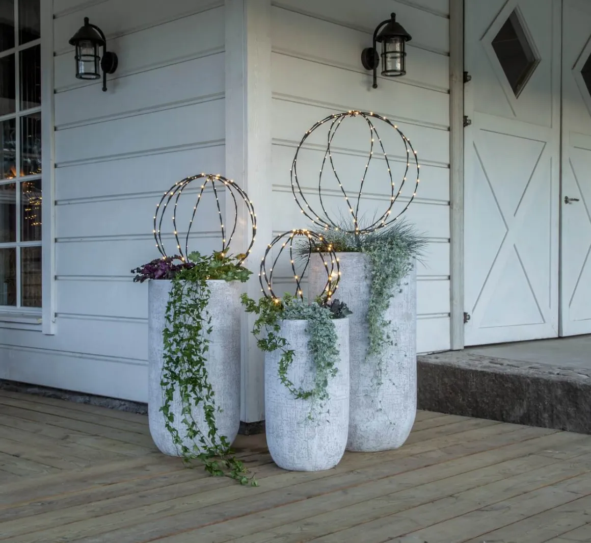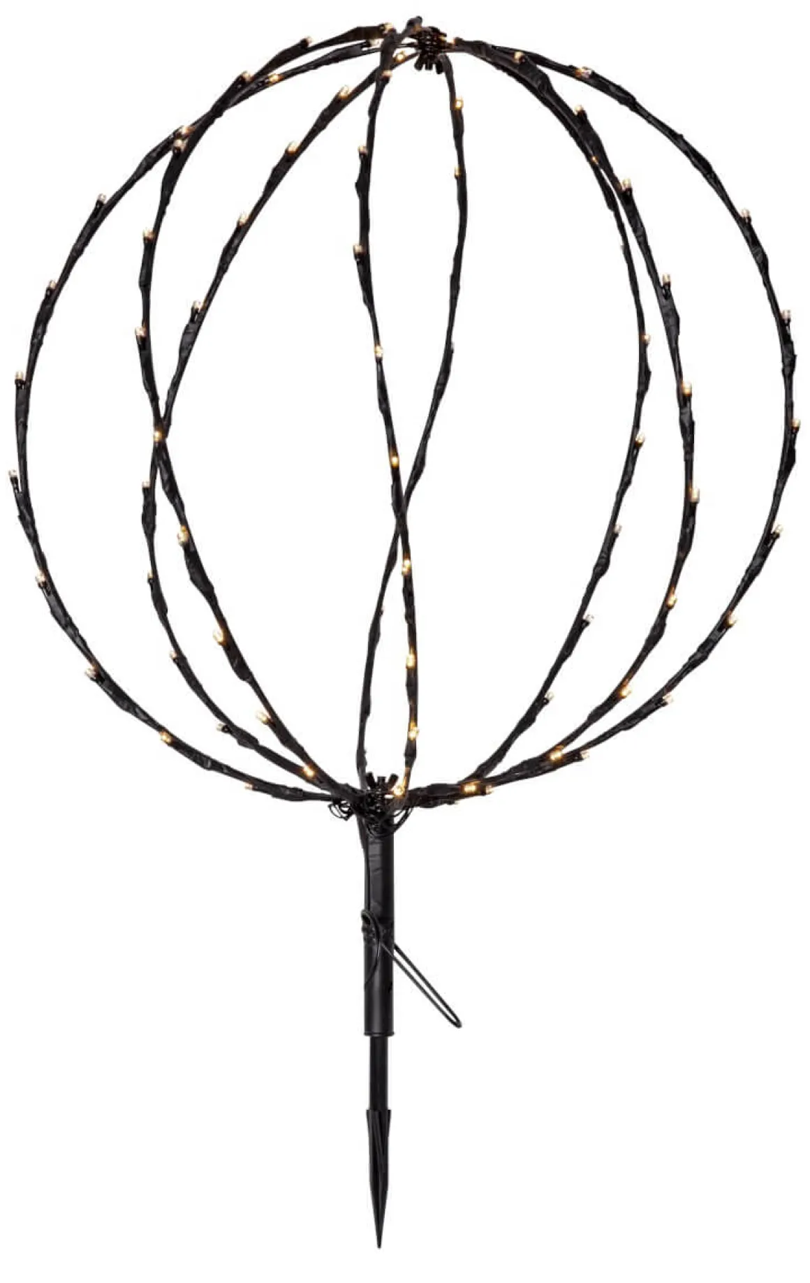 Sphere från Star Trading är ett dekorativt klot med 88 varmvita ljuspunkter, 40cm i diameter som ger ett härligt ljus till din trädgård. Produkten kan användas som både hängande och stående, markspettet är avtagbart och det finns en krok för upphäng, för att inte belasta kabeln rekommenderar vi att du använder en kedja eller rep att hänga klotet i. Batteribox för utomhusbruk. Klotet är hopvikbart vilket sparar utrymme när den inte används. Sphere finns i 3 storlekar här ser du den mellersta.