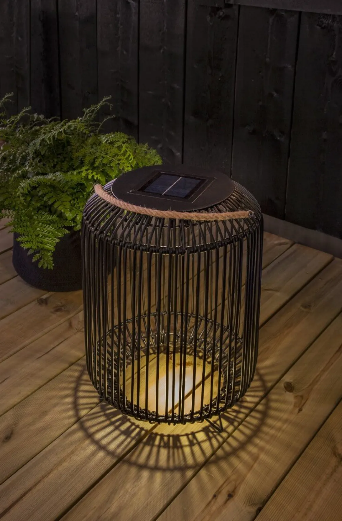 Solcellsdriven svart dekorationskorg från Star Trading som lyser upp med ett härligt varmvitt sken under natten. En fin dekoration till trädgården, uteplatsen eller balkongen.