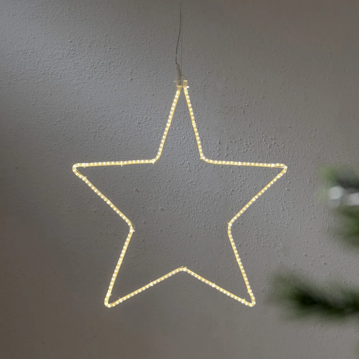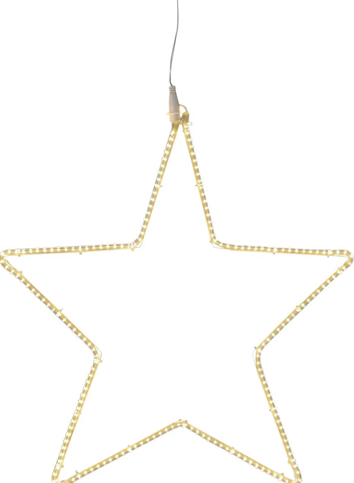 Vackert lysande siluett med formen av en stjärna. Runt hela siluetten lyser det 192 små små varmvita led lampor. Perfekt att hänga på en dörr eller högst upp i den där stora granen ute i trädgården.