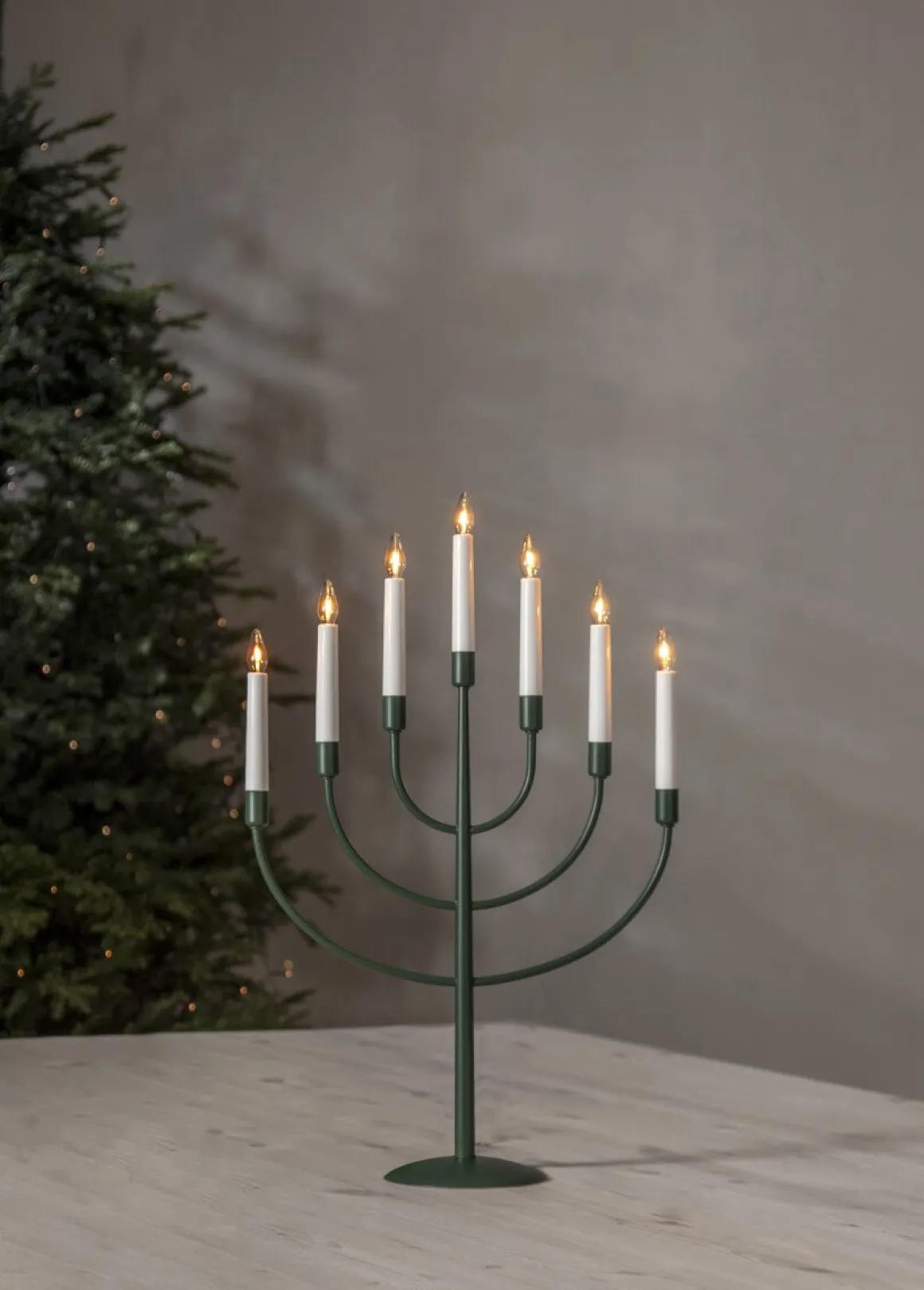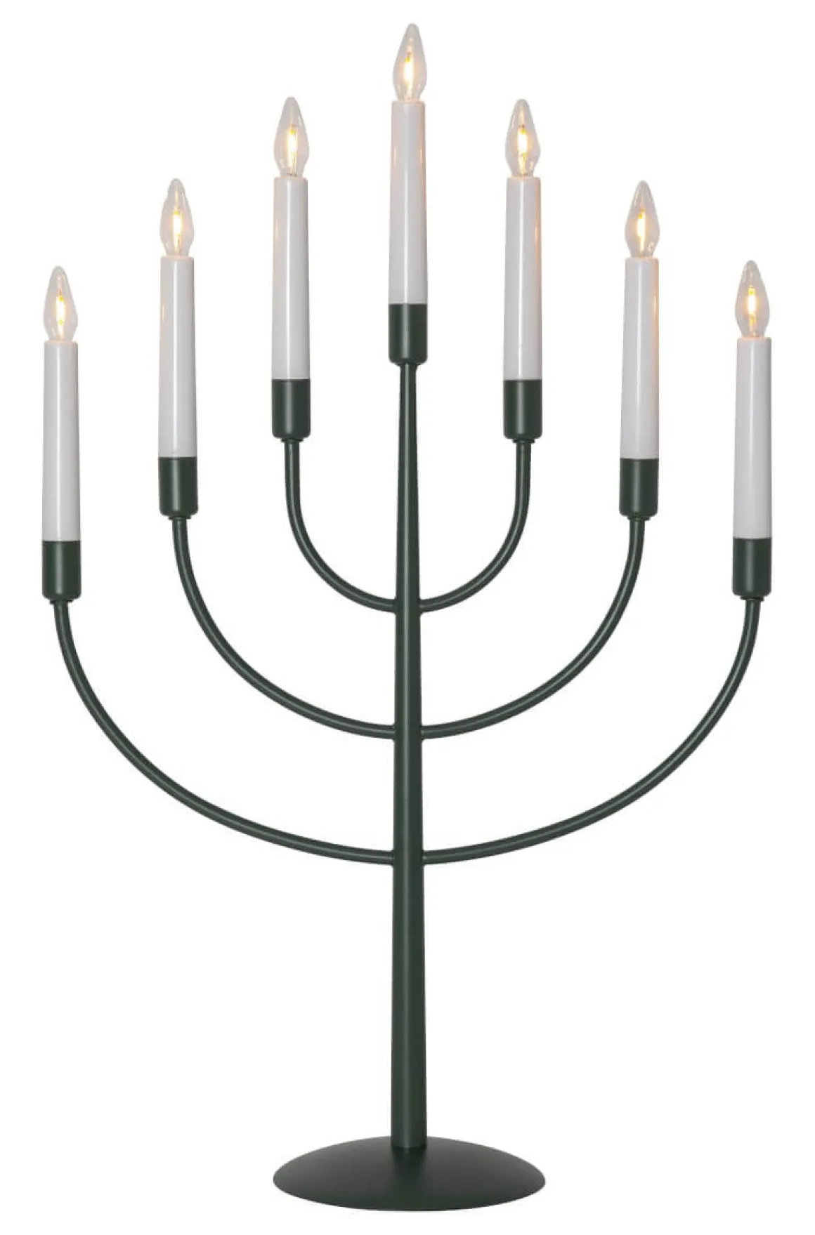Star Tradings eleganta metalljusstake Titus här i läcker grön färg uppdaterad med den senaste ljuskällan. 7 ljuskällor av modellen soft glow. Sprider ett härligt ljus och skapar julstämning.