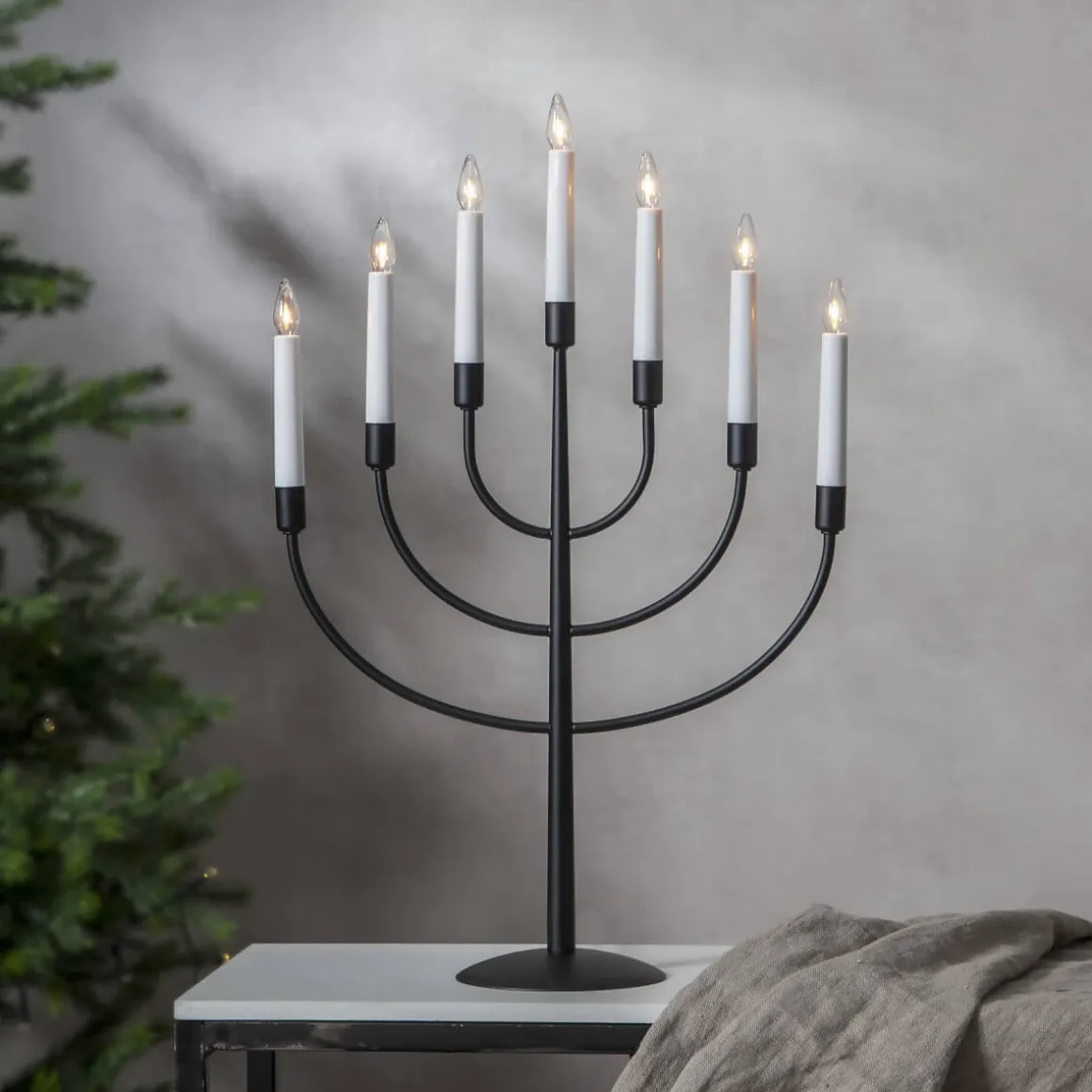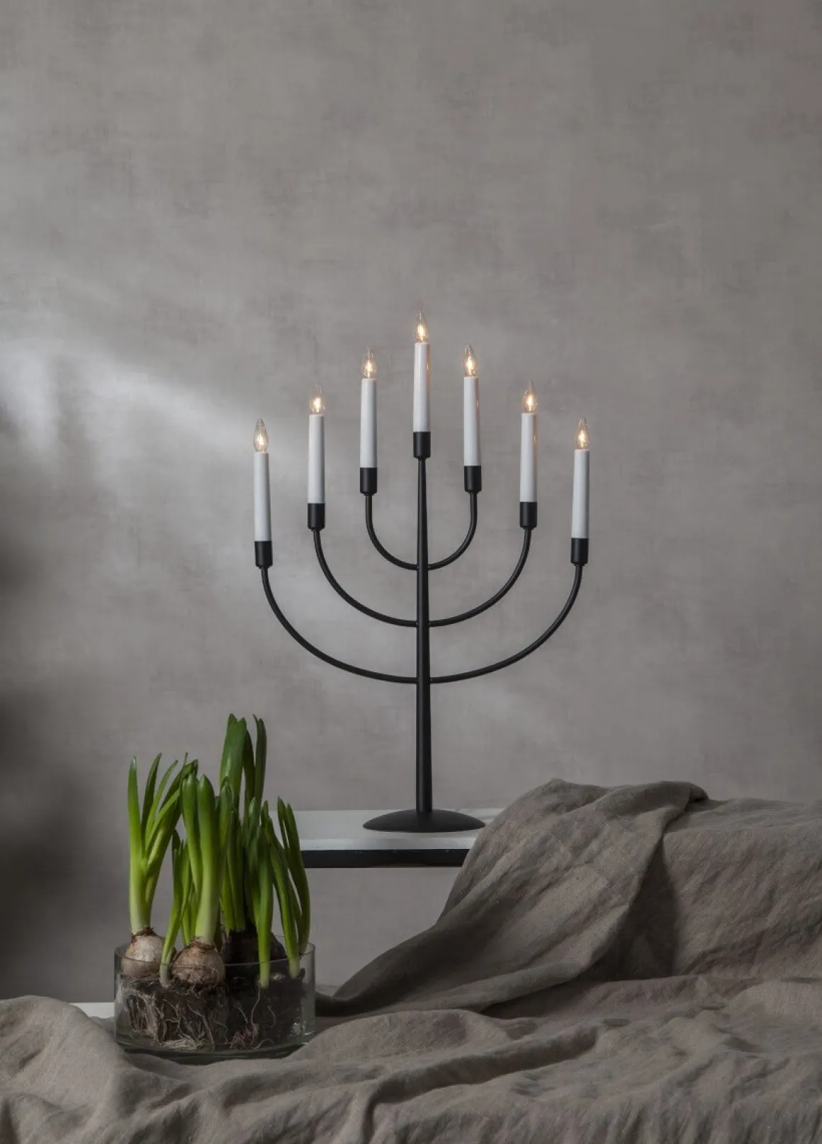 Star Tradings eleganta metalljusstake Titus här i svart uppdaterad med den senaste ljuskällan. 7 ljuskällor av modellen soft glow. Sprider ett härligt ljus och skapar julstämning.