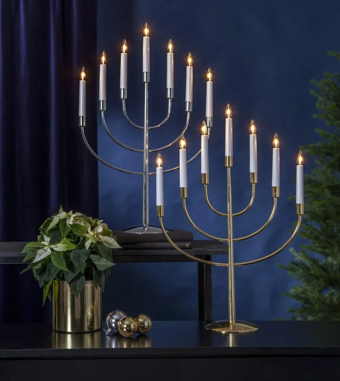 Star Tradings eleganta metalljusstake Titus här i mässing uppdaterad med den senaste ljuskällan. 7 ljuskällor av modellen soft glow. Sprider ett härligt ljus och skapar julstämning.