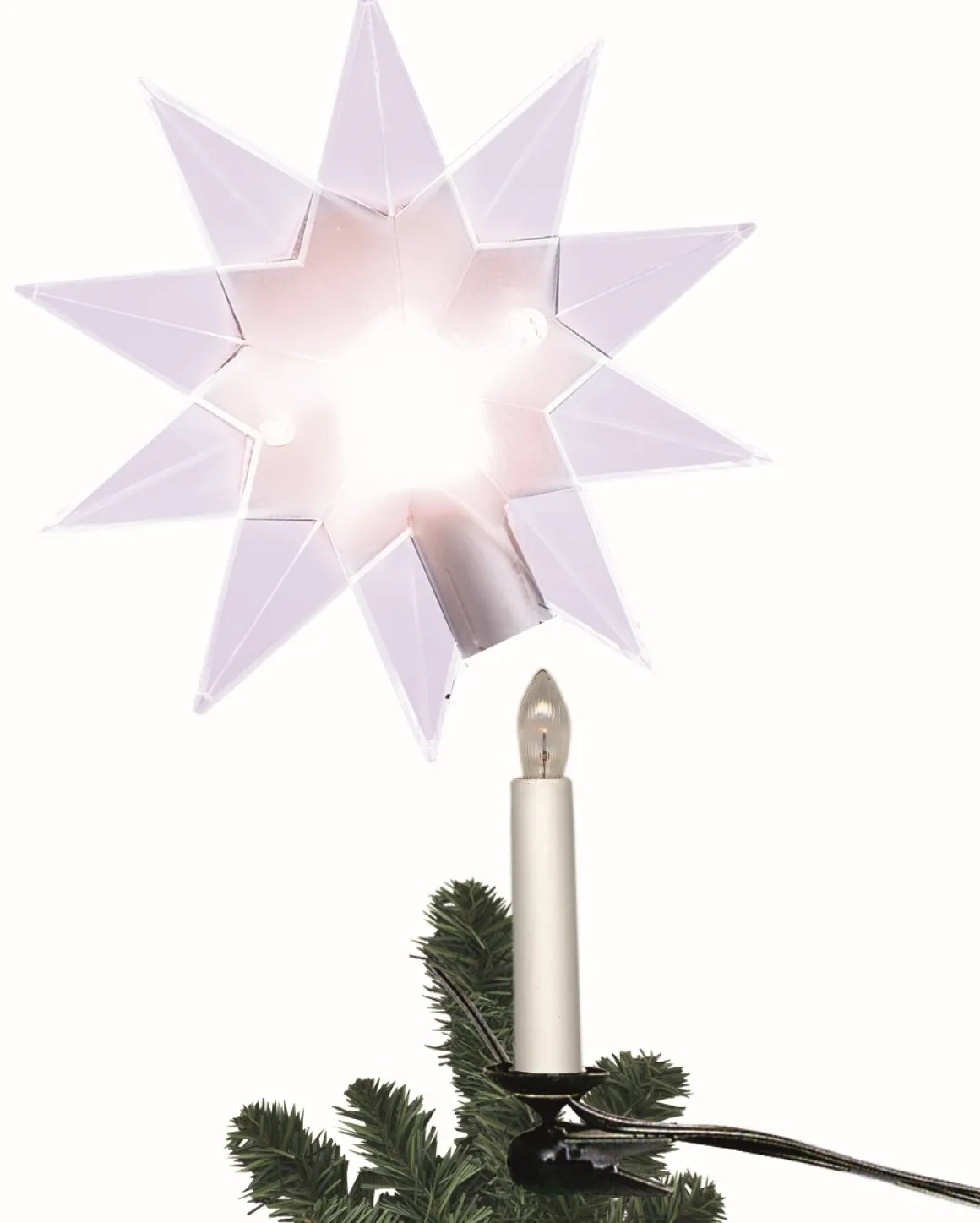 Läcker Toppstjärna till Julgranen som du enkelt monterar ovanpå ett granljus