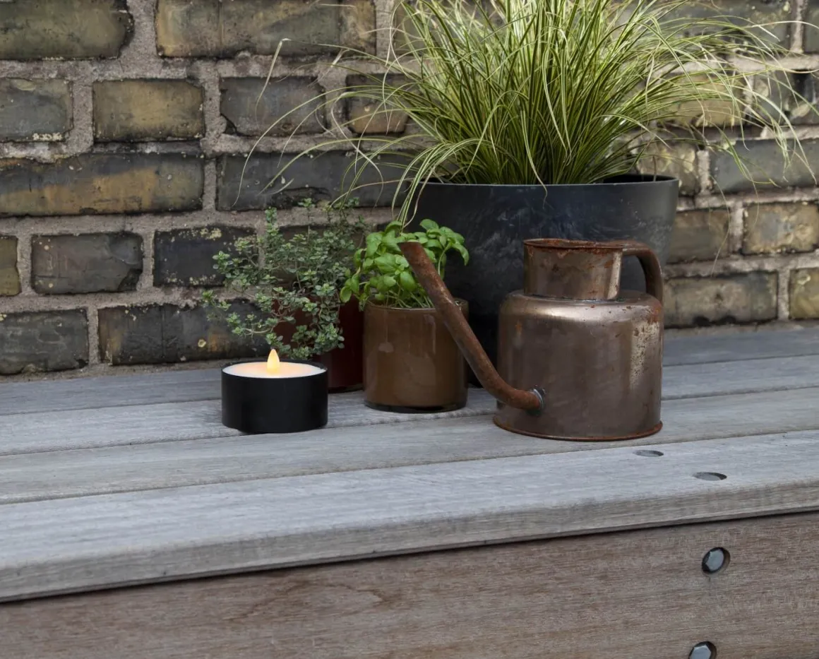 Marschall i svart plåt och vax från Star Trading. lågan lyser varierande med 18 varmvita LED som ger en realistisk flammande låga. Ljuset har timerfunktion så du enkelt kan styra över när du vill att marschallen ska lysa. Givetvis är den godkänd för utomhusbruk.