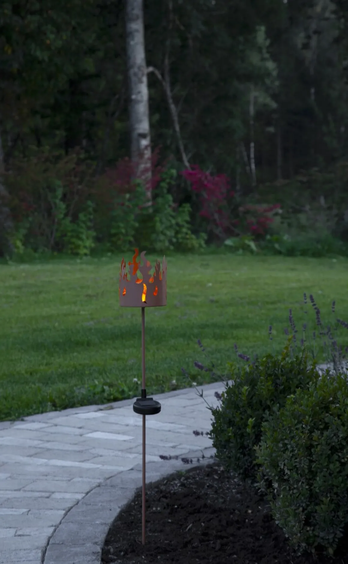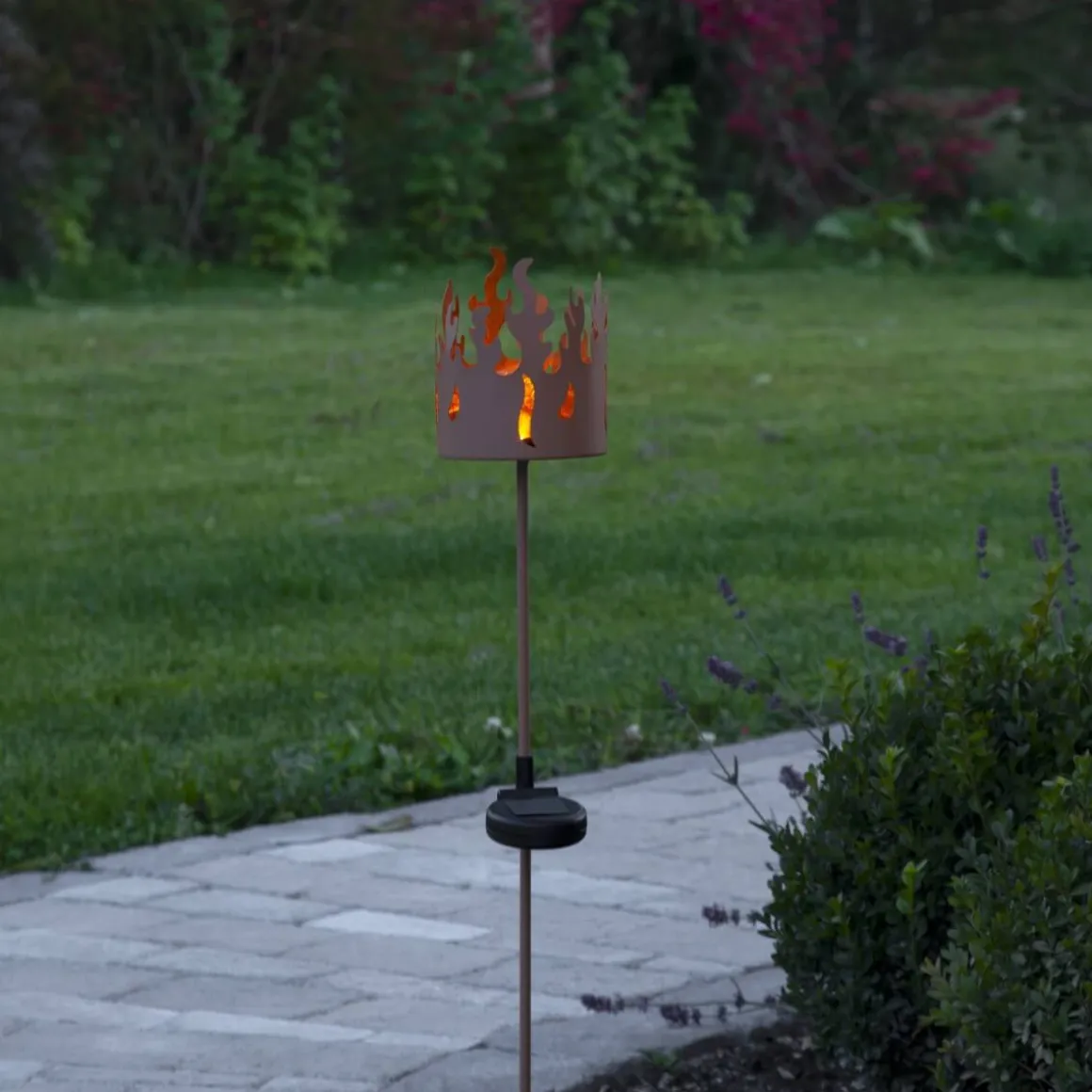 Solcellsbelysningen Torchy från Star Trading är en gångdekoration i rostfärgad metall – så läckert. Det utskurna mönstret ger ett marschall liknande utseende och solcellsdekorationen lyser upp med gult varmt sken i mörkret. Denna gångbelysning är lättplacerad och ger ett vackert sken i din trädgård, balkong eller terrass. Placera solcellslampan där solen kan nå panelen under dagen för att få ultimat laddning till det medföljande batteriet.
