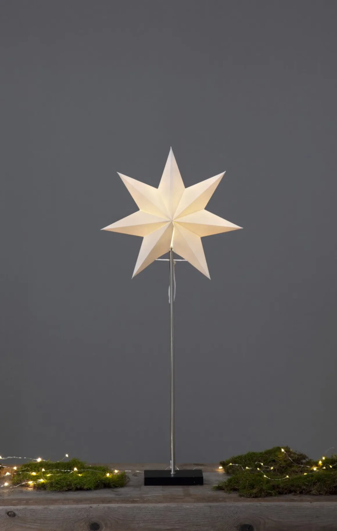 Totto är en strålande kandidat för alla höga fönster där ute! Här med svart fot samt höjd på hela 80 cm och en mindre stjärna på toppen! Toppen helt enkelt!