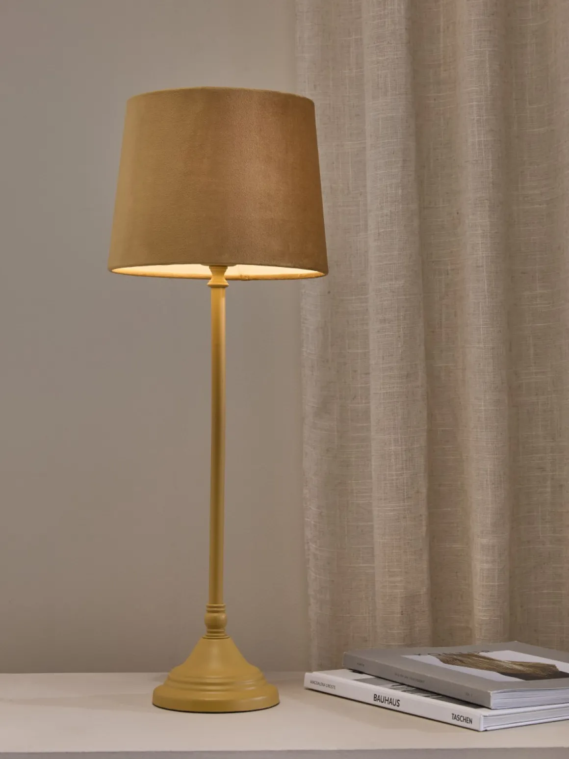 Lampfot Tove – en stilren Gul bordslampa i metall, perfekt för hallen, fönstret, sängbordet eller skrivbordet. Den gula lampfoten har en höjd på 46 cm och en diameter på 10,5 cm, vilket gör den lätt att placera. Passar skärmar med en diameter på 20-25 cm. Utrustad med en 1,5 m textilsladd med strömbrytare. E27 sockel, max 40W. Notera att ljuskälla inte ingår. Ge ditt hem ett elegant lyft med denna tidlösa design!
