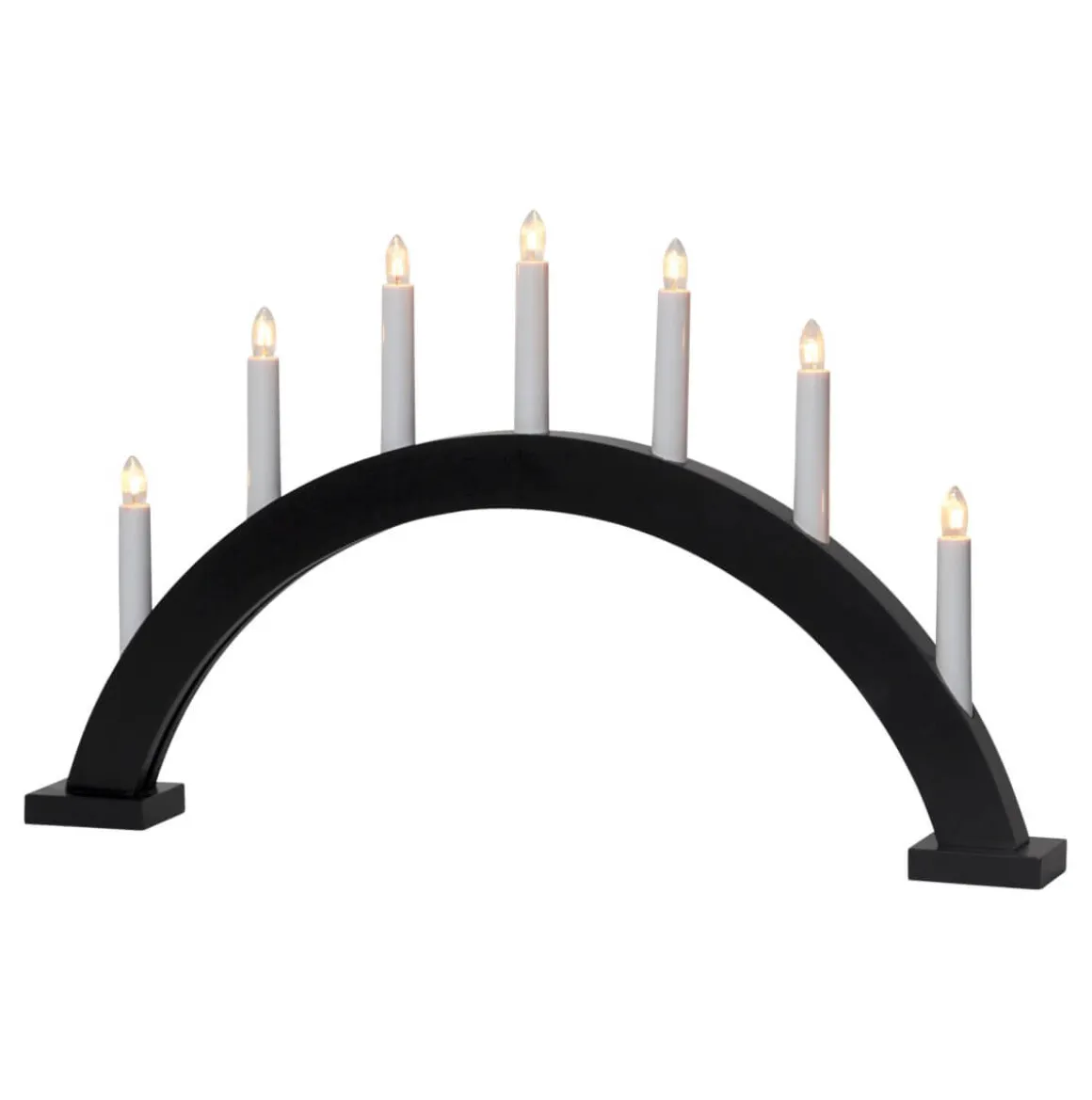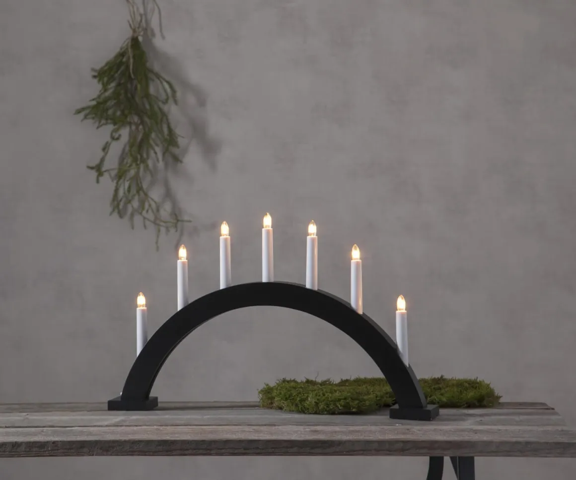 Svart bågformad träljusstake med 7 ljus. Med sin enkla och stilrena design passar den utmärkt i både hem å stuga.