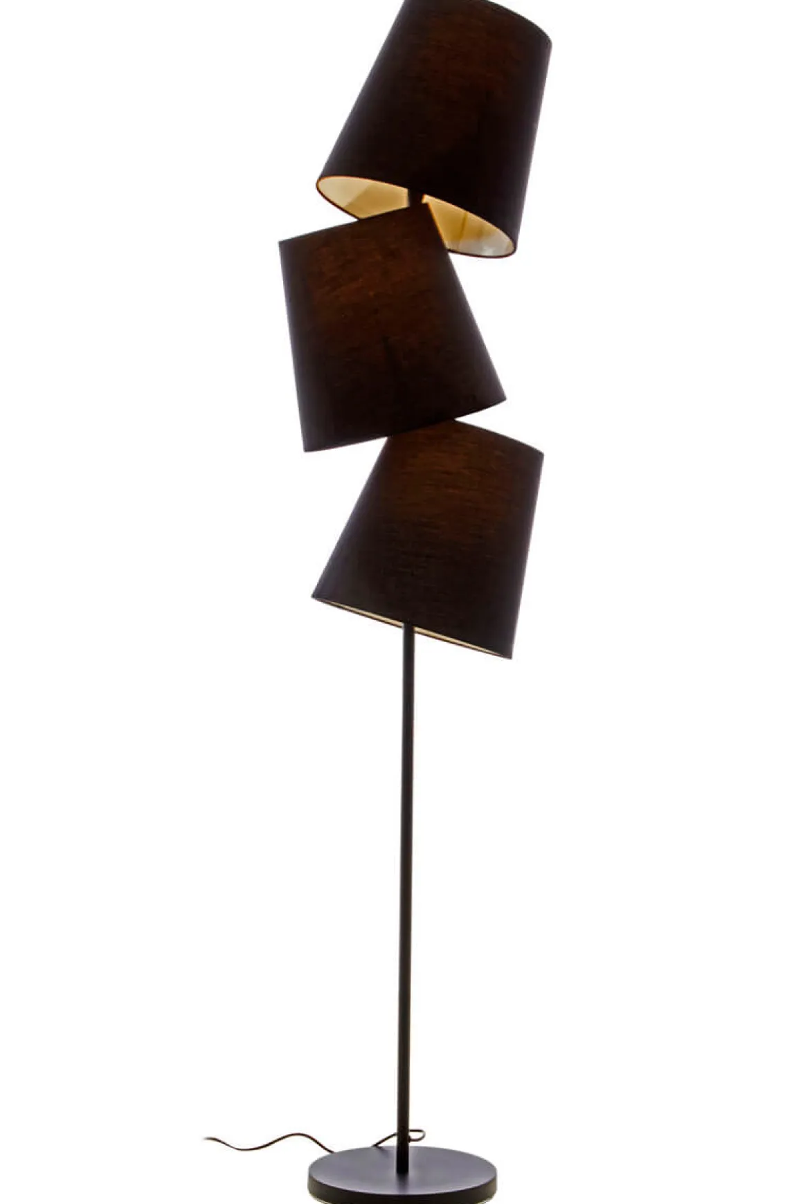 Så Festlig golvlampa från Aneta. Stomme i svart metall med tre stycken svart skärmar trädda över lampfoten (som givetvis ingår). Tres är perfekt för dig som vill att din lampa ska vara en del av inredningen.
