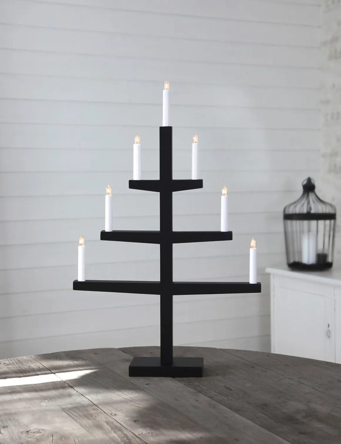 Stilren Svart ljusstake i trä, med sin enkla design passar den enkelt in i alla hem, denna ljusstaken kan du enkelt ändra stil på genom att köpa till någon av våra fina dekorationshyllsor!