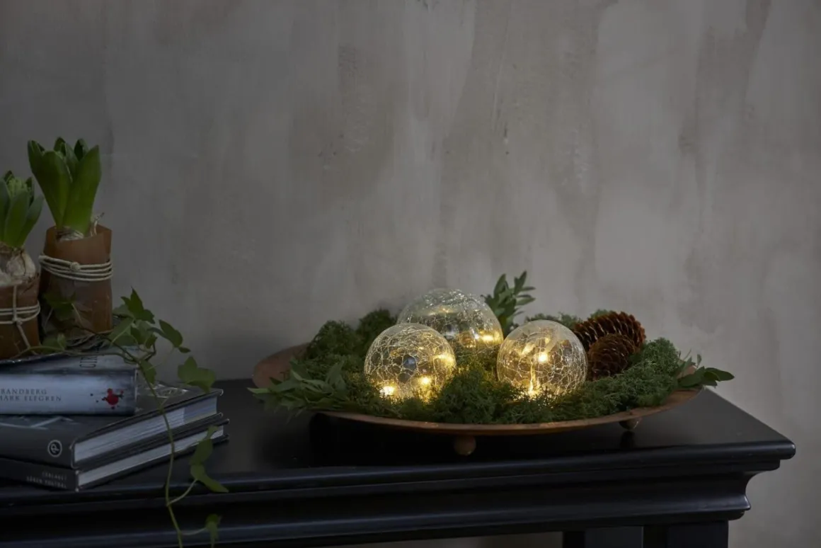 SÅ söt liten bordsdekoration från Star Trading med 3 stycken transparenta sammanlänkade bollar i olika storlekar. Bollarna styrs enkelt med batteriboxen med den inbyggda timern. Perfekt för sig själv eller i en dukning.
