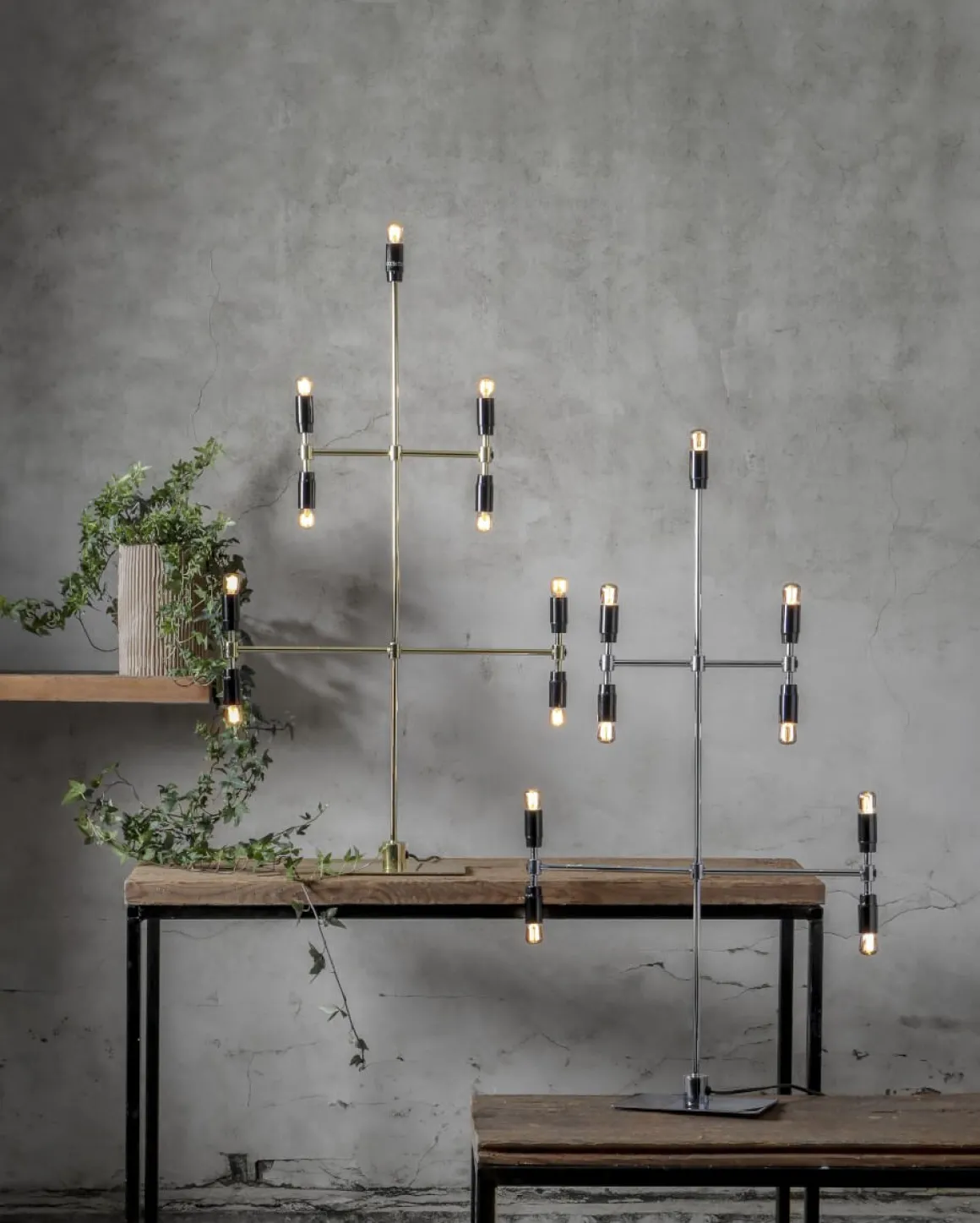Modern ljusstake i kromad metall med svarta lamphållare från Star Trading med den spännande lilla detaljen att den har dubbla lamphållare. Dekorera underverket med ditt egna val av ljuskälla för att sätta din personliga stil på underverket. Passar lika bra under årets alla månader såväl som i juletid.
