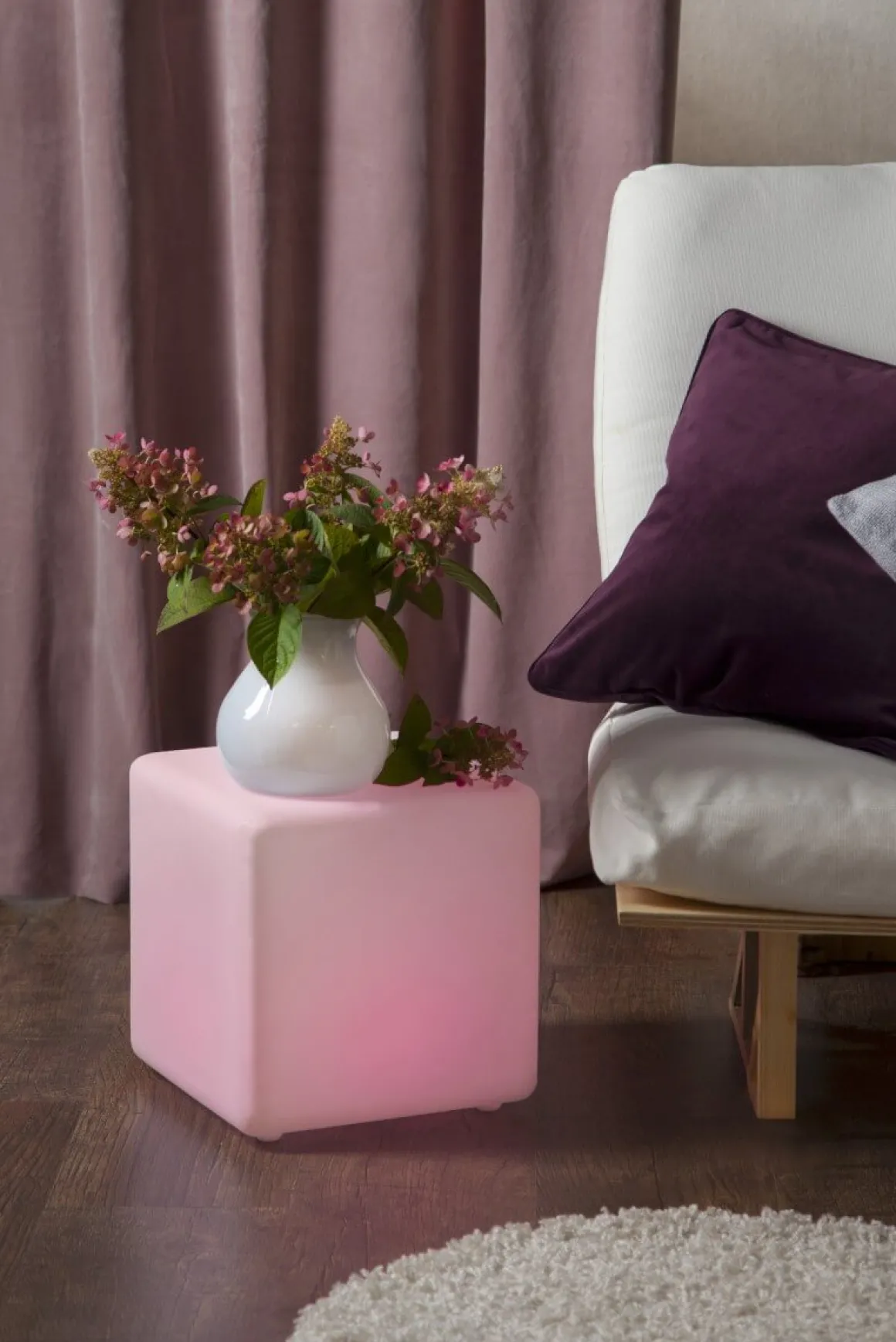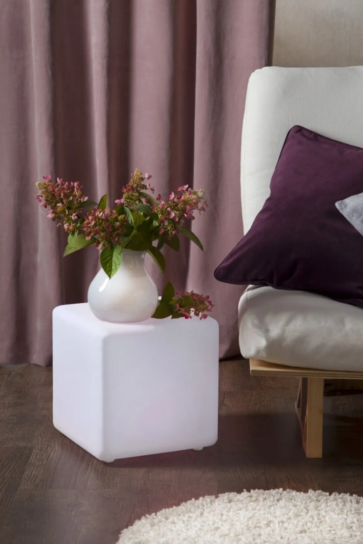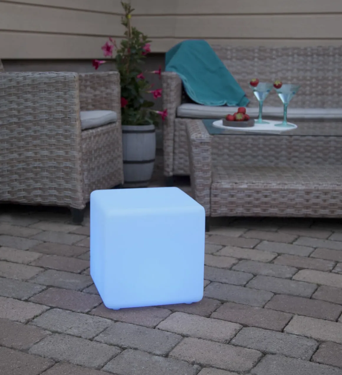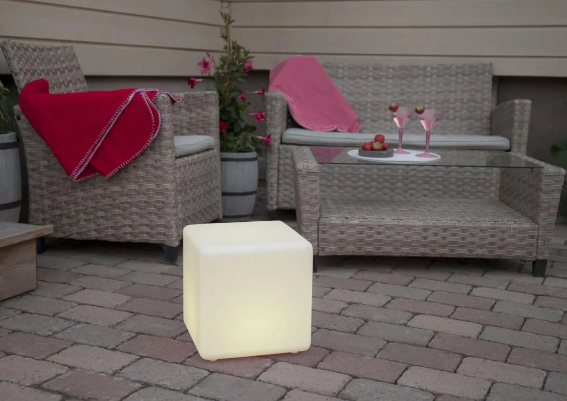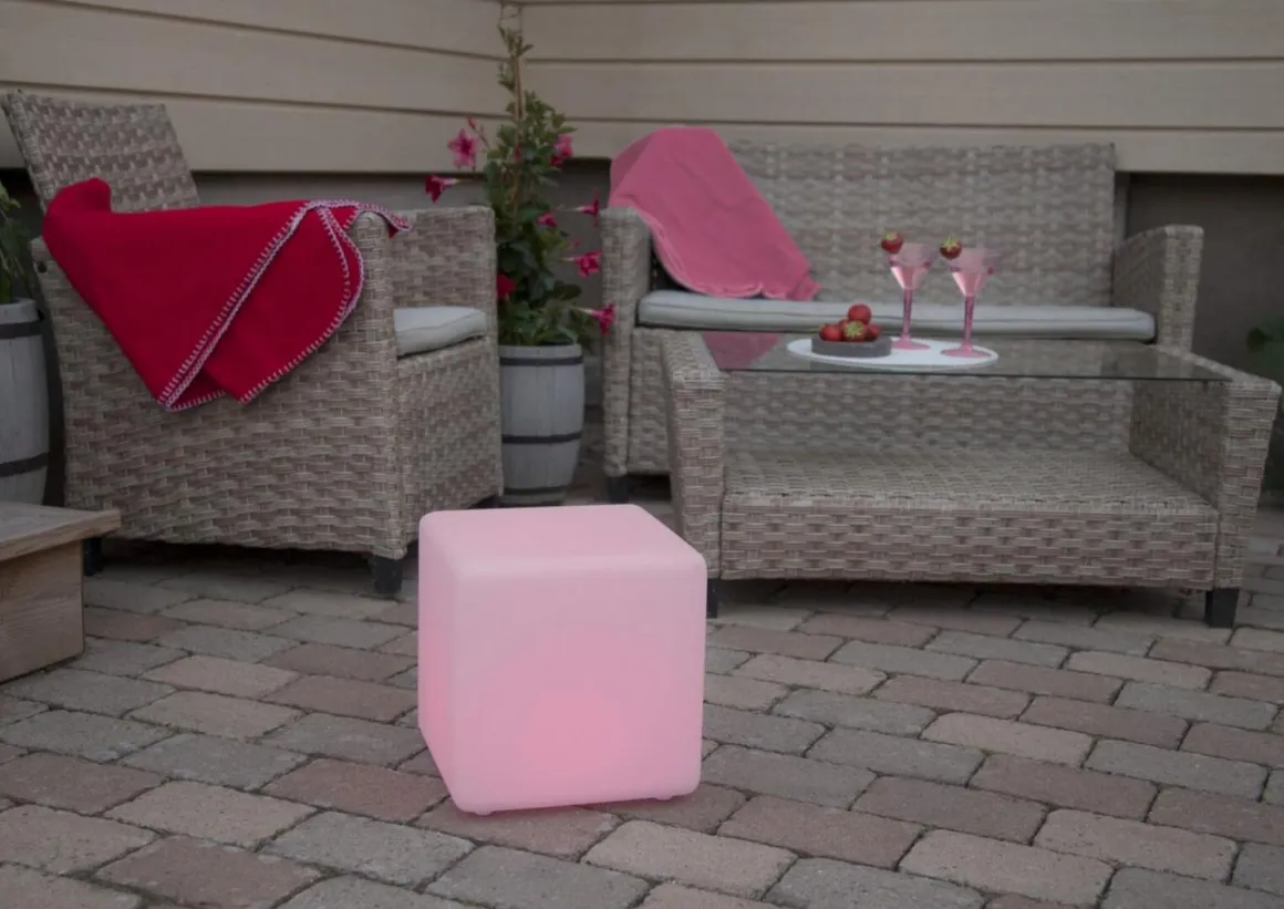 Superfin 29 cm hög lysande kub för utom- & inomhusbruk med fjärrkontroll. Välj bland skiftande färger eller ett fast ljus/färg. Inkl. uppladdningsbara batterier och transformator. Batterierna laddas av trafon och lyser upp till 8 timmar. Snyggt och kombinera olika storlekar.