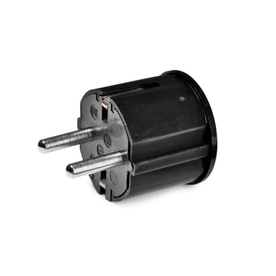 2 polig svart jordad stickkontakt med sidoinföring. 250V 16A
