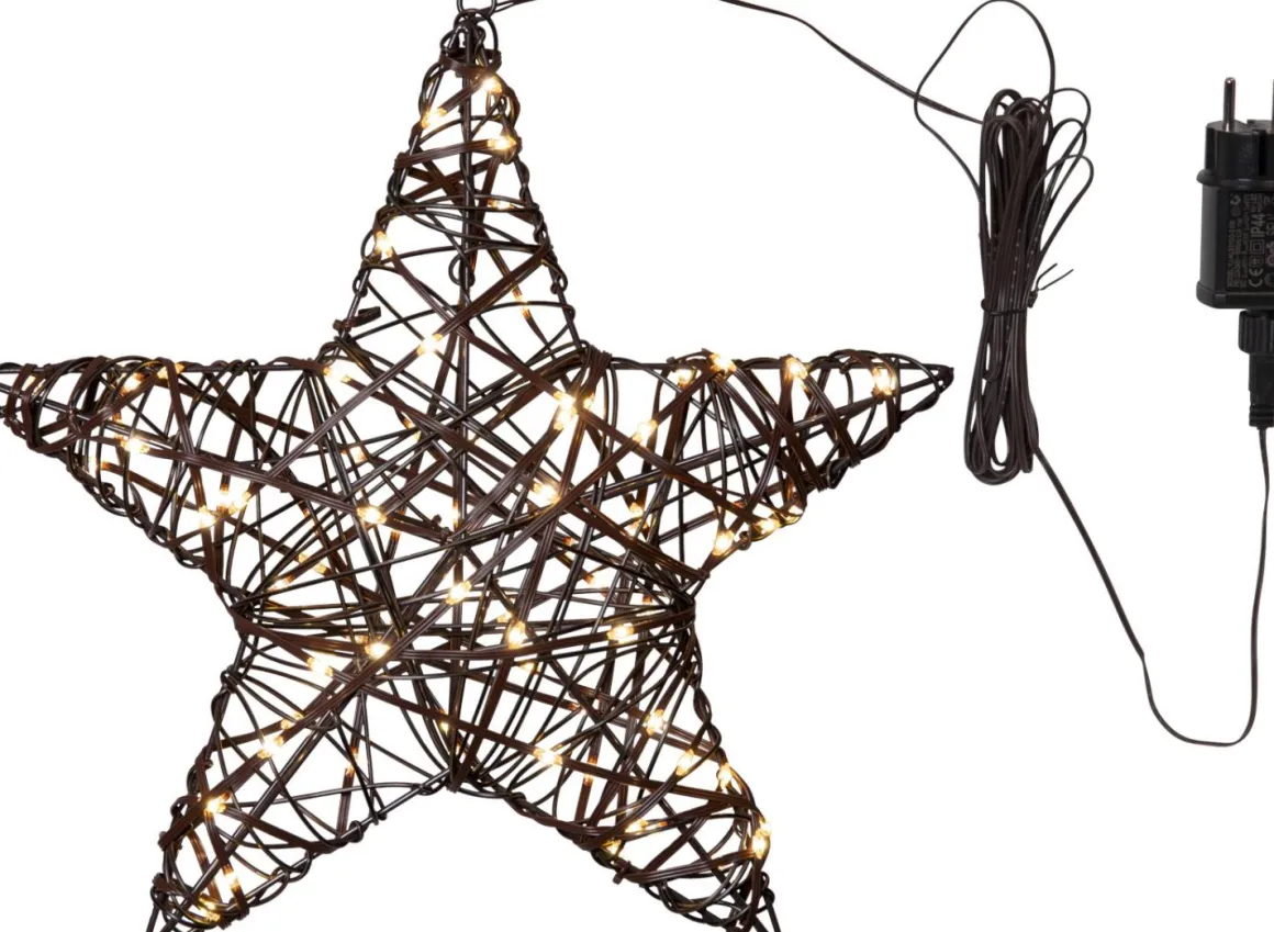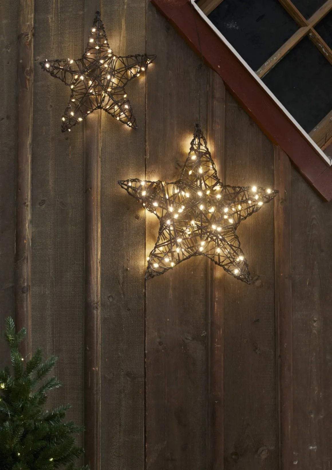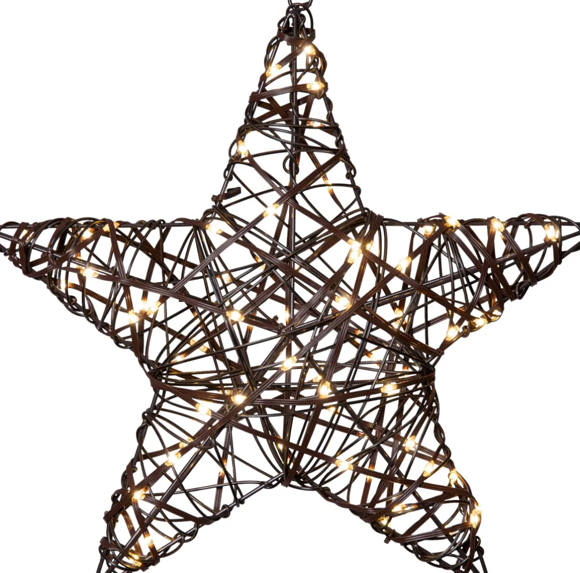 Vicke är en utomhusdekoration från Star Trading i form av en40 cm hög stjärna. Av brun konstrotting med metallstomme. En fin dekoration för uteplatsen och trädgården.