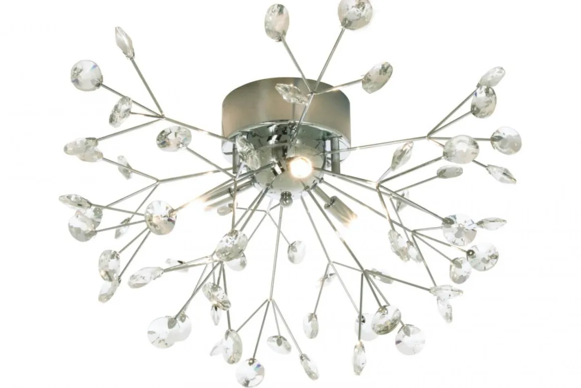 Åh vackra viva plafond med sina grenliknande armar med en gnistrande prisma i varje ände ger ett pampigt och lyxigt intryck. Med 3 stycken G9 ljuskällor lyser hon upp såväl i hallen som i vardagsrummet. Här ser du Viva i krom.