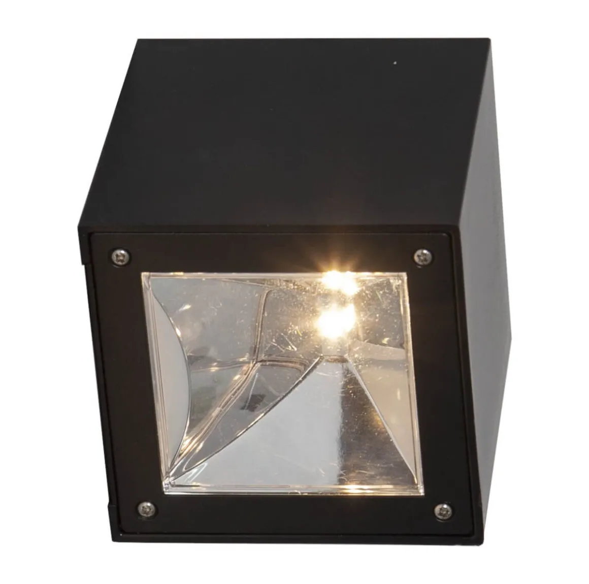 Vägglampa med solcellsdrift i modern design med ett ljusflöde på 20 lumen. Cube laddas upp under dagen för att sedan tändas av sig själv när mörkret kryper på. Snabbt och enkelt!