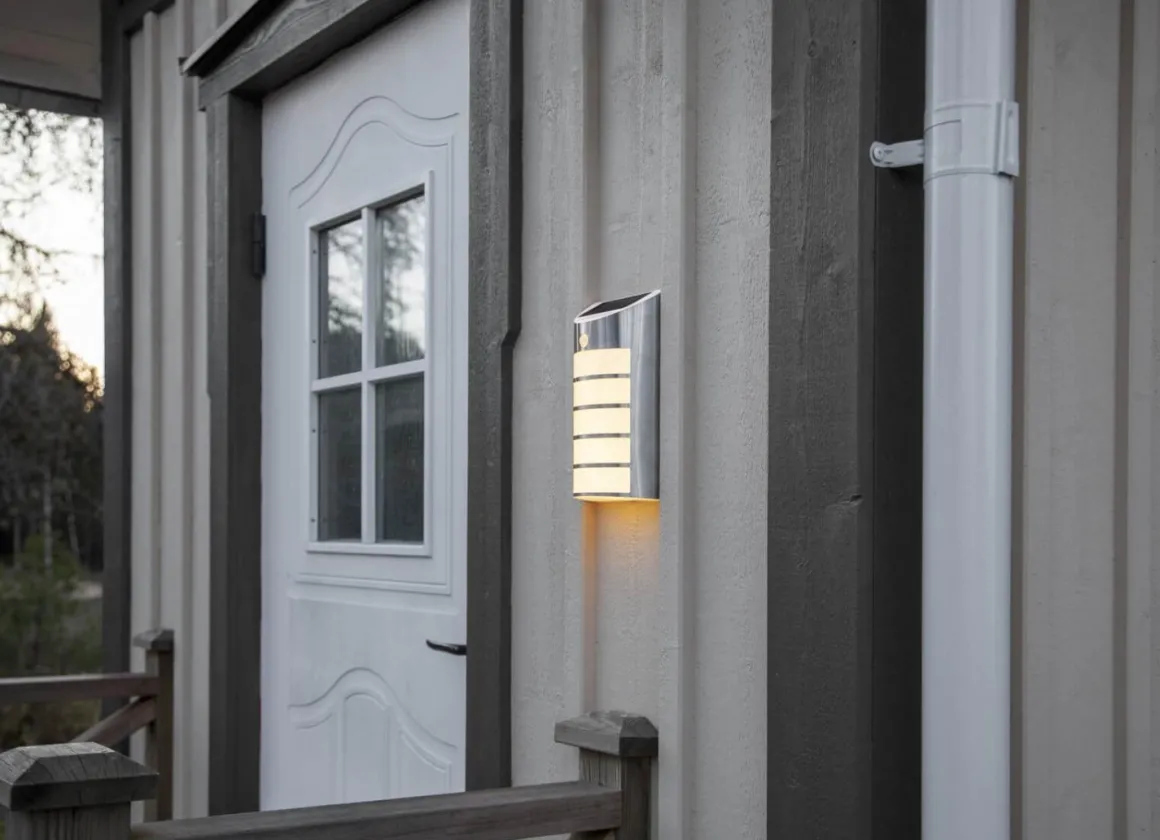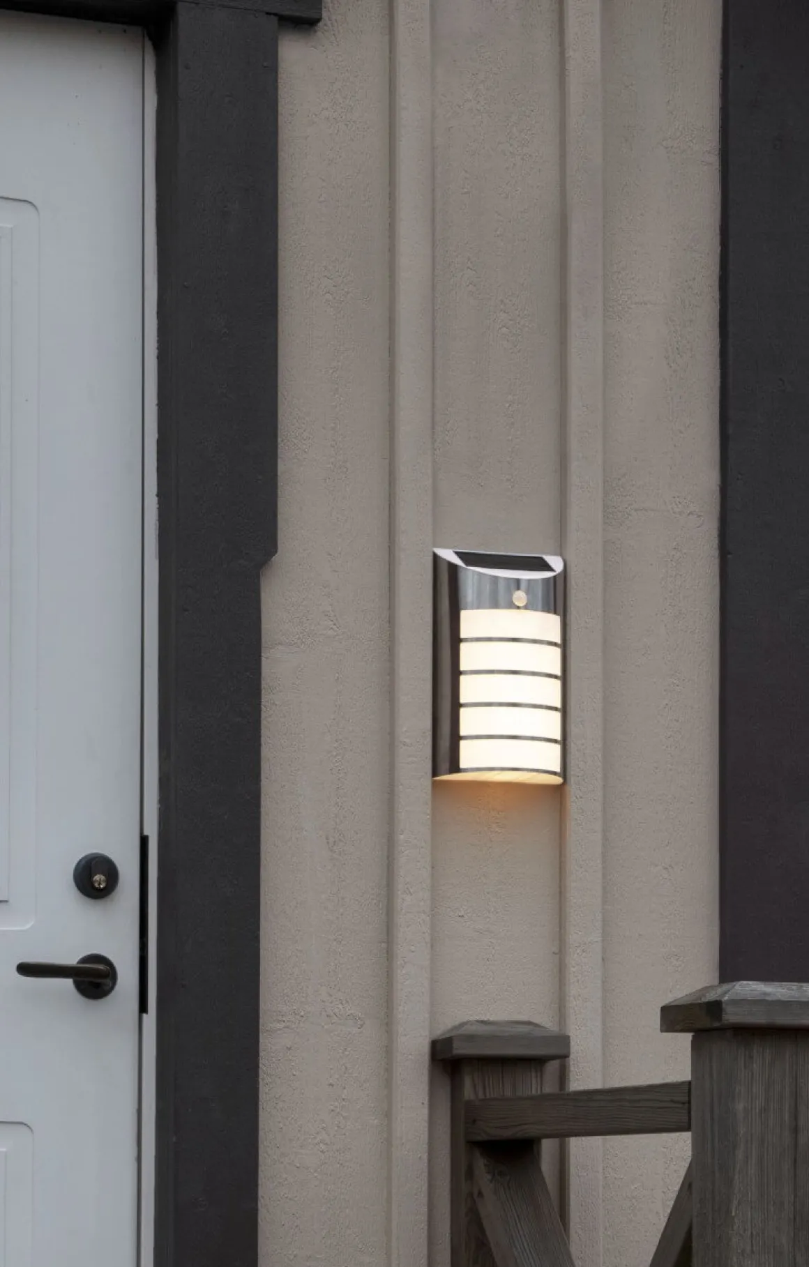 Så vacker solcellsdriven väggbelysning med rörelsesensor från Star Trading som ger 50 Lumen under 30 sekunder när du passerar sensorn och går ner till 8 Lumen i konstant sken under natten. Fin belysningen att ha på fasaden och i entrén.
