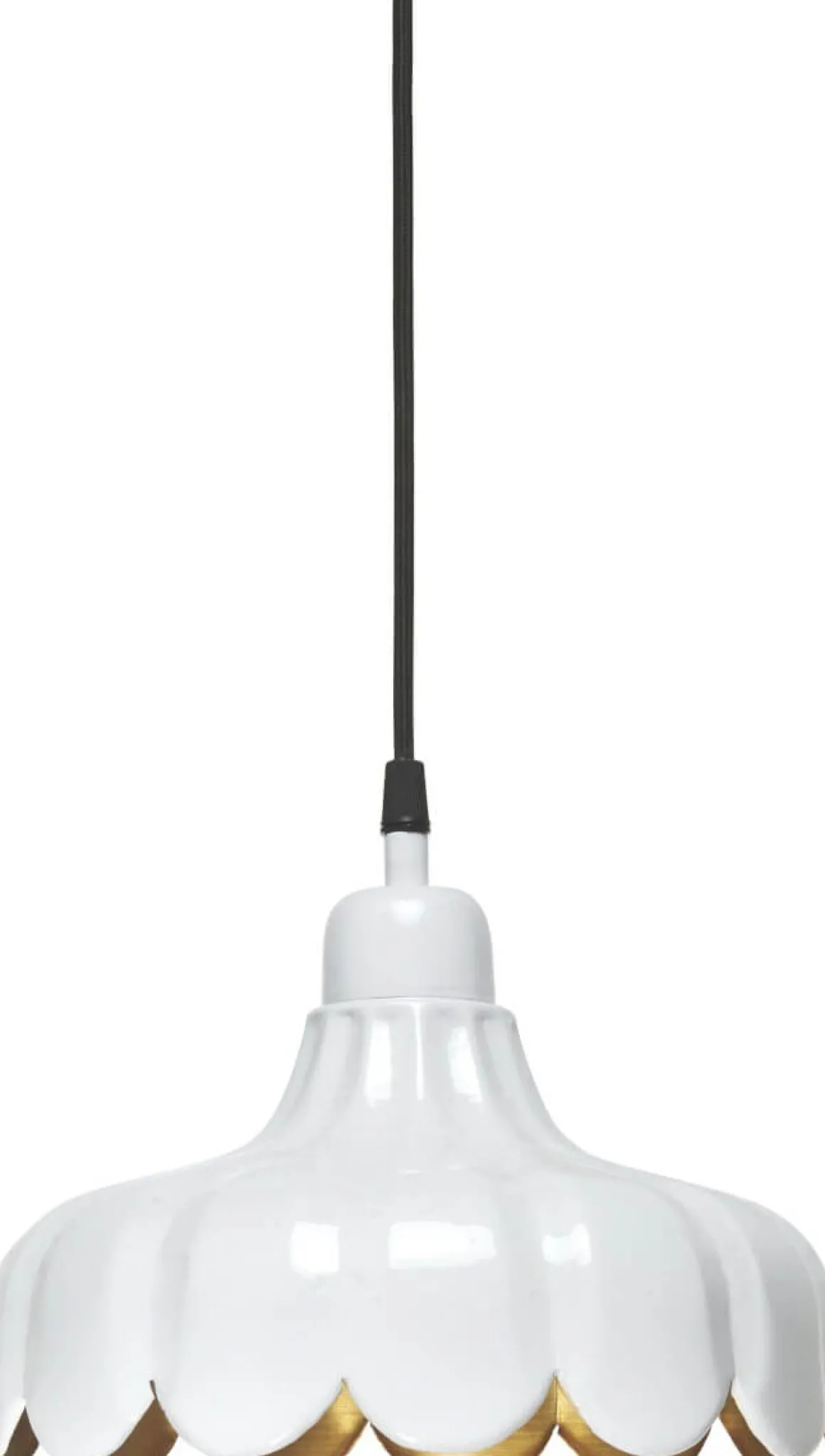 PR-Homes nya serie Wells ger en fräsch romantisk känsla i ditt hem. De har tydligt inspirerats av en blomma och skapat denna serie med taklampa, fönsterlampa och bordslampa i4 färger, rosa, grön, vit och svart. Alla har en guldfärgad insida som sprider ett varmt härligt sken. Varje skärm är handgjord. Wells kommer pryda ditt hem med sina feminina former och läckra färger. Här ser du tak/fönsterlampan i vit.