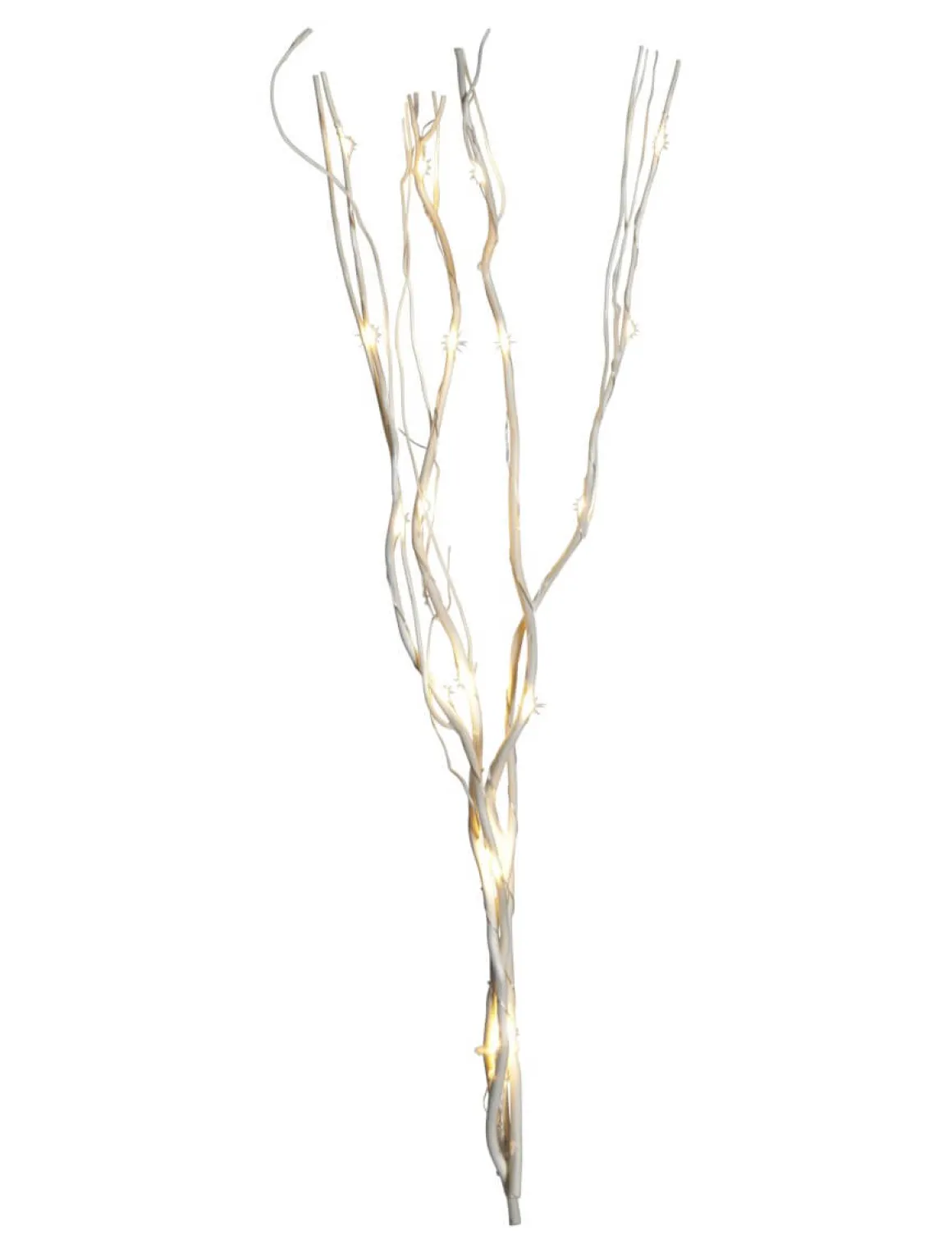 Batteridriven naturfärgad dekorationskvist med den läckra dew drop slingan invävd bland grenarna. En vacker inomhusdekoration som ger rummet en fin inredning med ljus. Kvisten har 24 LED-ljuskällor.