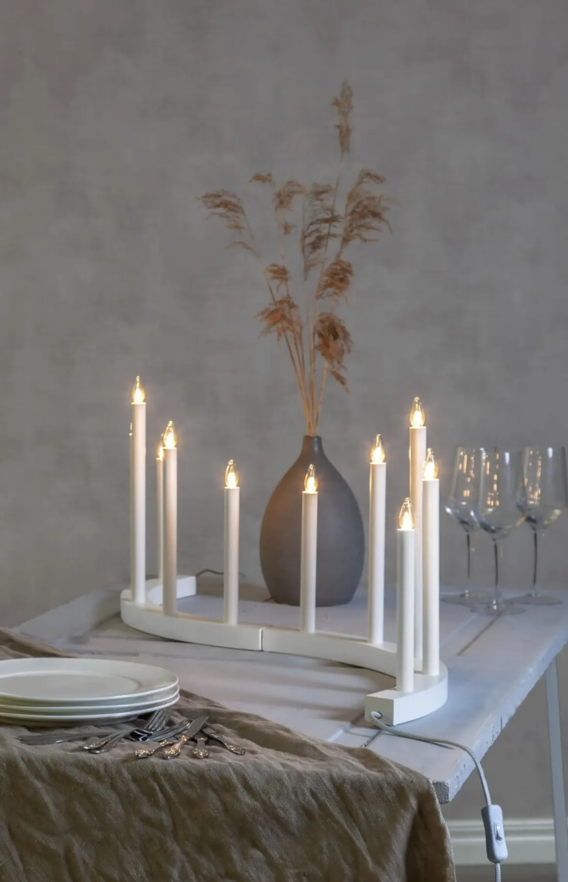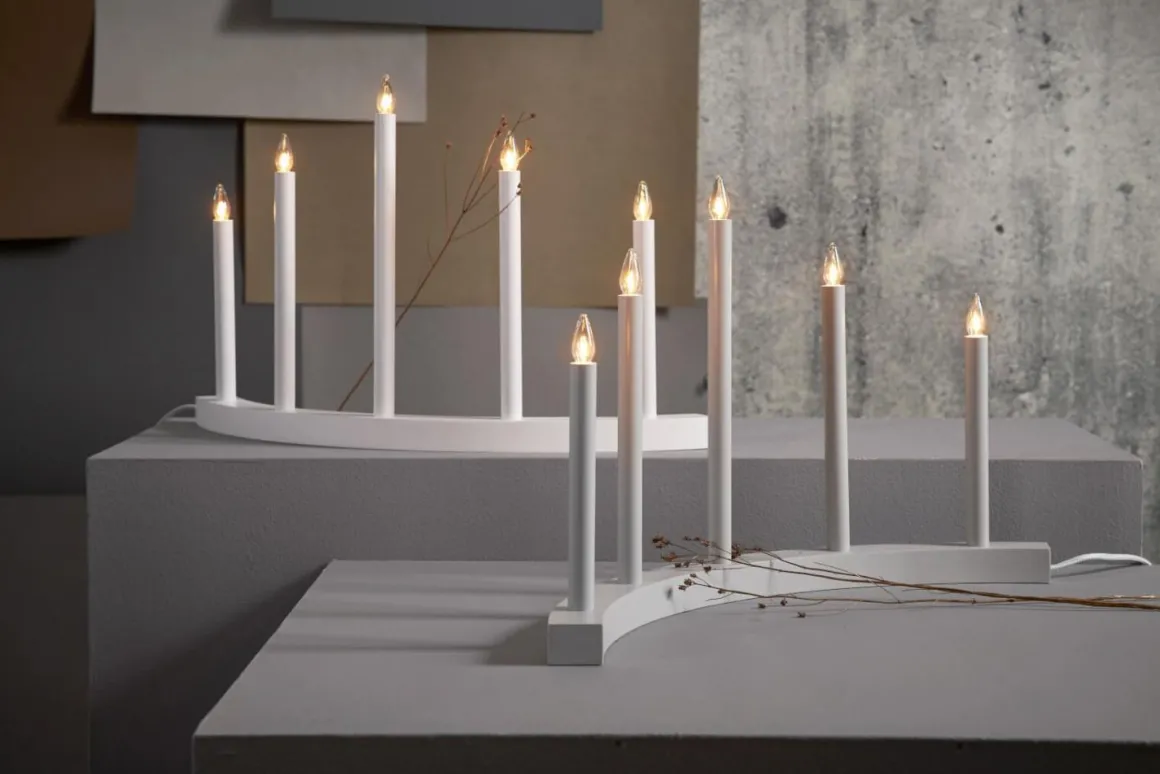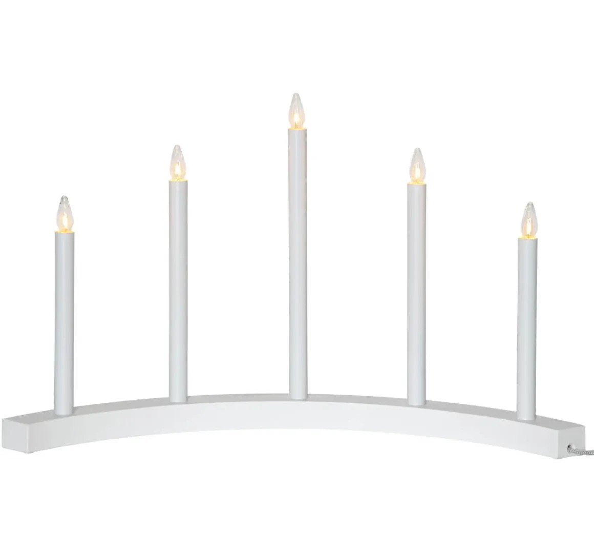 Stilren ljusstake med en läckert böjd bas i trä med 5 kraftiga ljuspipor i metall. Nytänkande design som ger ett mjukt och härligt sken i ditt hem. Här ser du läcka Accent i vitt.
