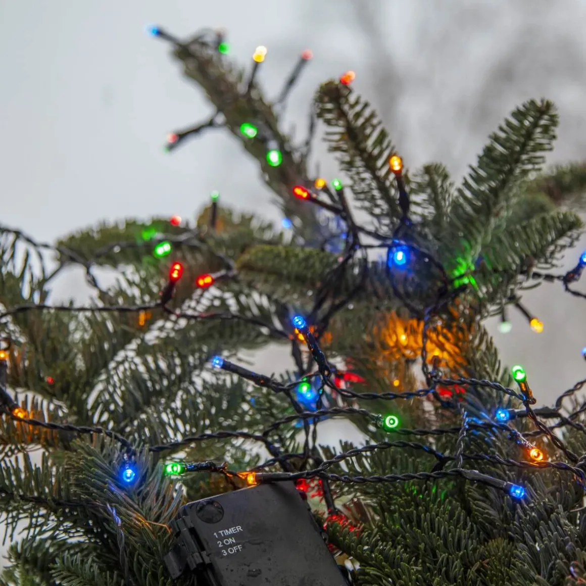 Batteridriven slinga för utomhusbruk på hela 11,2 meter med 160 stycken multifärgade små dioder. Självklart har underverket en inbyggd timer som gör det enkelt för dig att ställa in när det ska lysa.