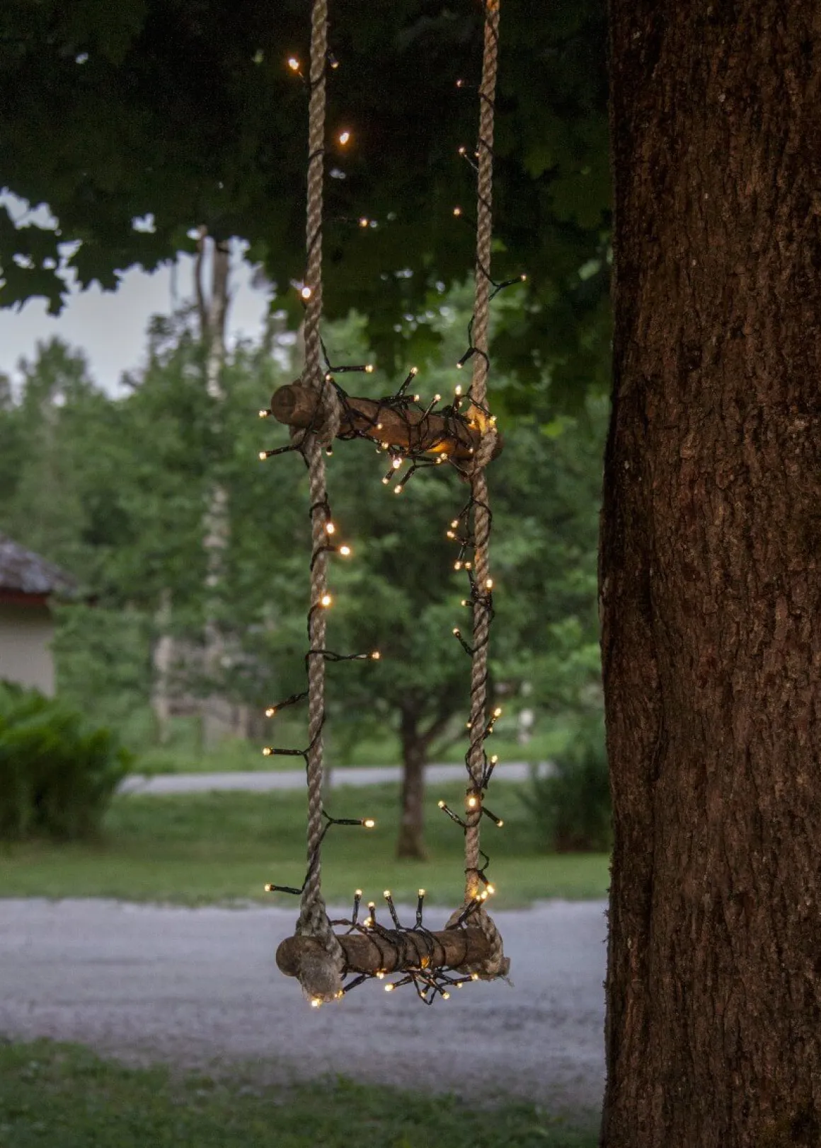 Batterifriven slinga för utomhusbruk på hela 11,2 meter med 160 stycken varmvita små dioder. Självklart har underverket en inbyggd timer som gör det enkelt för dig att ställa in när det ska lysa.