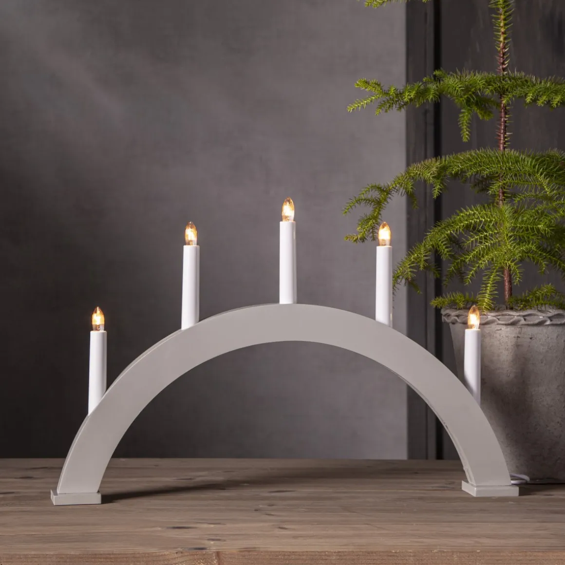 Beige bågformad träljusstake från Star Trading med 5 ljus. Med sin enkla och stilrena design passar den utmärkt i både hem å stuga.