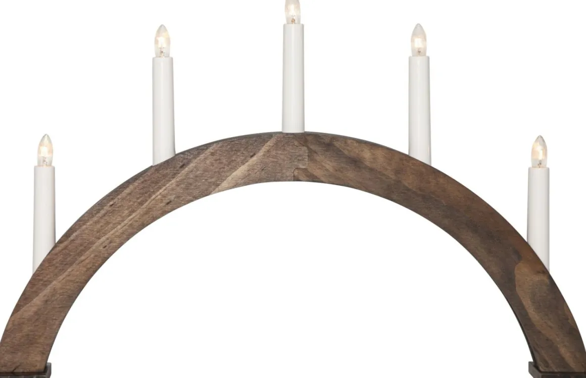 Brunbetsad bågformad träljusstake från Star Trading med 5 ljus. Med sin enkla och stilrena design passar den utmärkt i både hem å stuga.