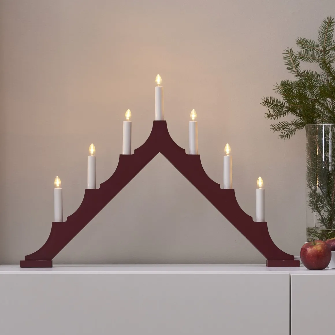 Röd adventsljusstake i FSC®-märkt trä för en klassisk julstämning med modern touch. Perfekt för fönster, sprider ett varmt och behagligt ljus. FSC® står för Forest Stewardship Council, en certifiering som garanterar hållbart skogsbruk och miljöansvar. Skapa mysig julbelysning med denna stilrena ljusstake!