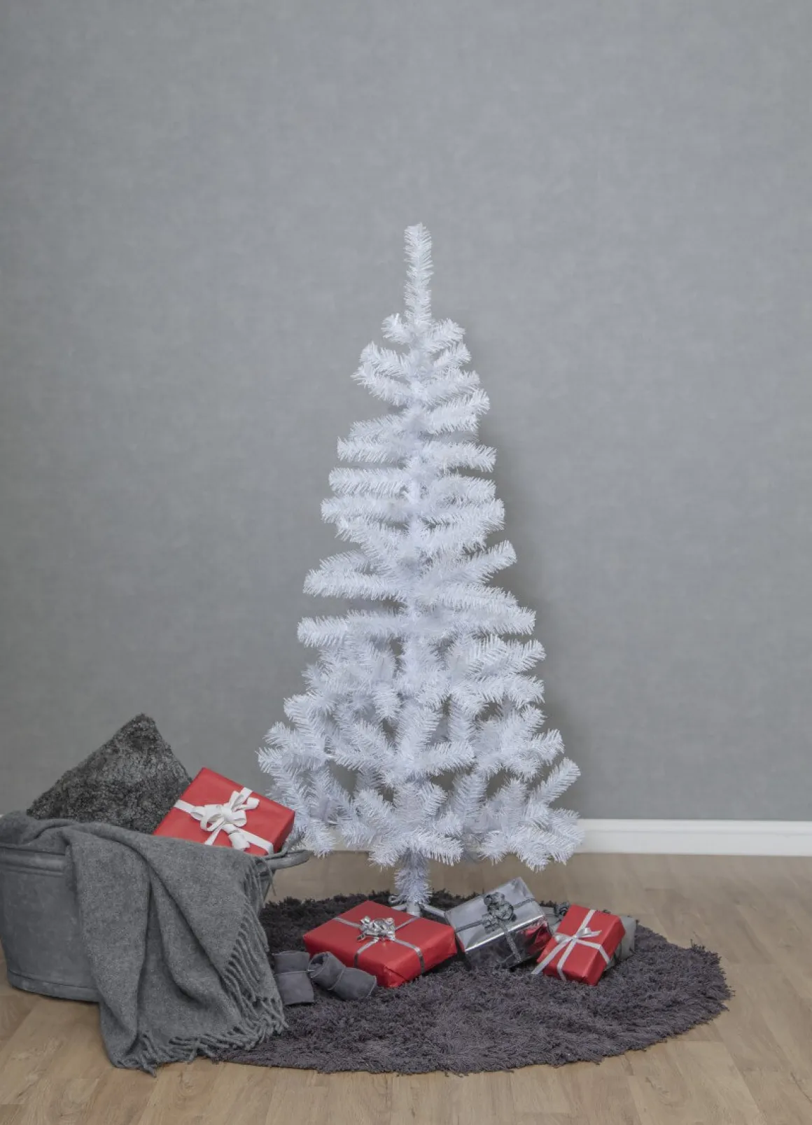 Alvik vit konstgran från Star Trading, en bra basgran på 150 centimeter med tillhörande slinga med 80 ljus i färgen Crispy ICE white. Om du önskar ha slingan i granen eller någon annanstans bestämmer du såklart helt själv då den levereras till granen men är ej monterad i granen.