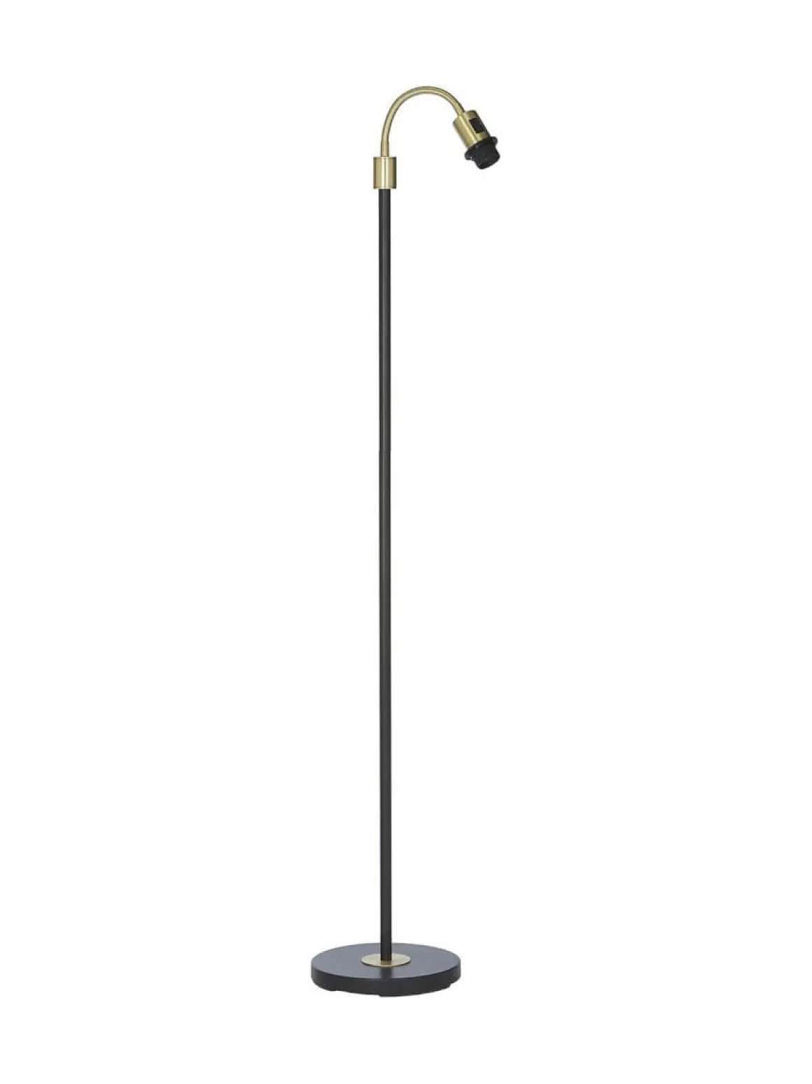 Golvlampa Amy i svart/mässing från PR-Home. En strålande baslampa där strömbrytaren sitter på övre delen som har en E27 lamphållare med flexarm. Golvfoten passar med skärmar med E27 toppringsfäste men vilken modell av dem alla väljer du självklart själv.110 cm plastkabel med väggkontakt.