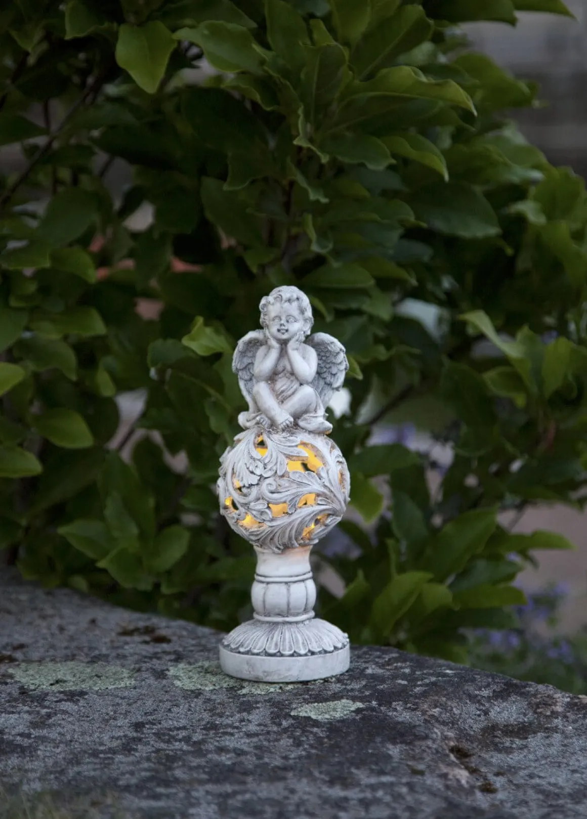 Vacker liten ängel som laddas av solen upp under dagen för att lysa så fint när mörkret kryper på.