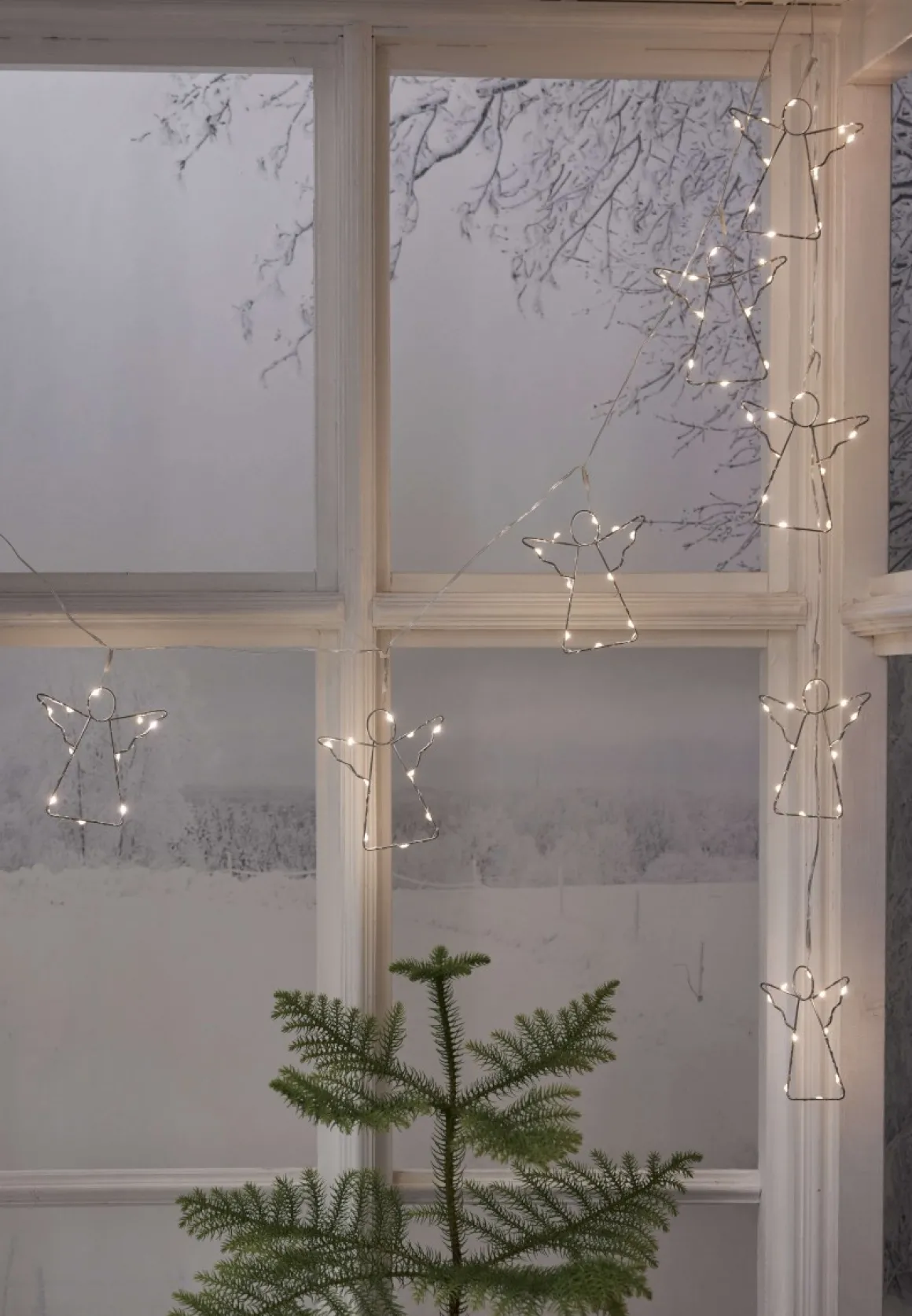 Vacker batteridriven slinga med 8 små söta änglar i silver, varje slinga utsmyckad med 10 stycken små små små ledljus.